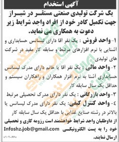 همچنین برای مشاهده صفحه نیازمندی های استخدامی استان فارس اینجا کلیک نمایید
