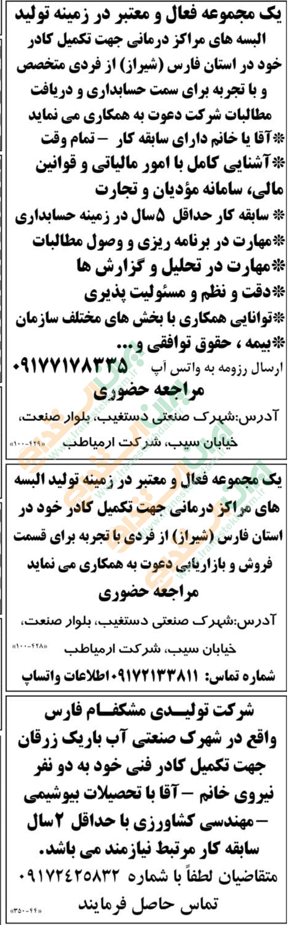 همچنین برای مشاهده صفحه نیازمندی های استخدامی استان فارس اینجا کلیک نمایید