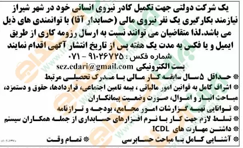 همچنین برای مشاهده صفحه نیازمندی های استخدامی استان فارس اینجا کلیک نمایید