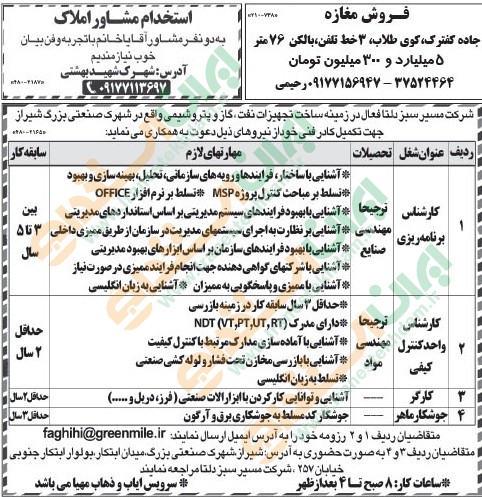 روزنامه استخدامی فارس و شهر شیراز | سه شنبه ۱۷ اسفند ۱۴۰۰