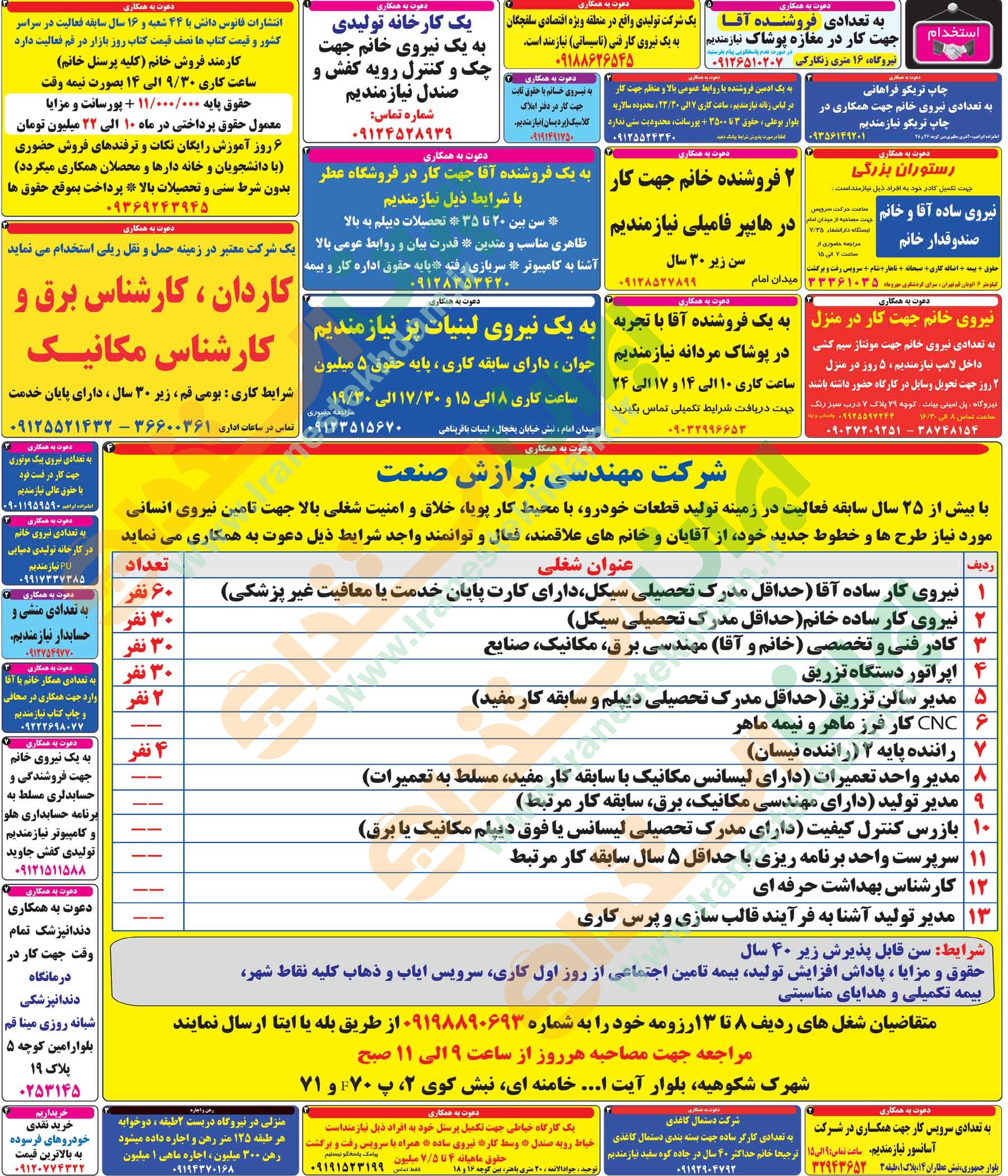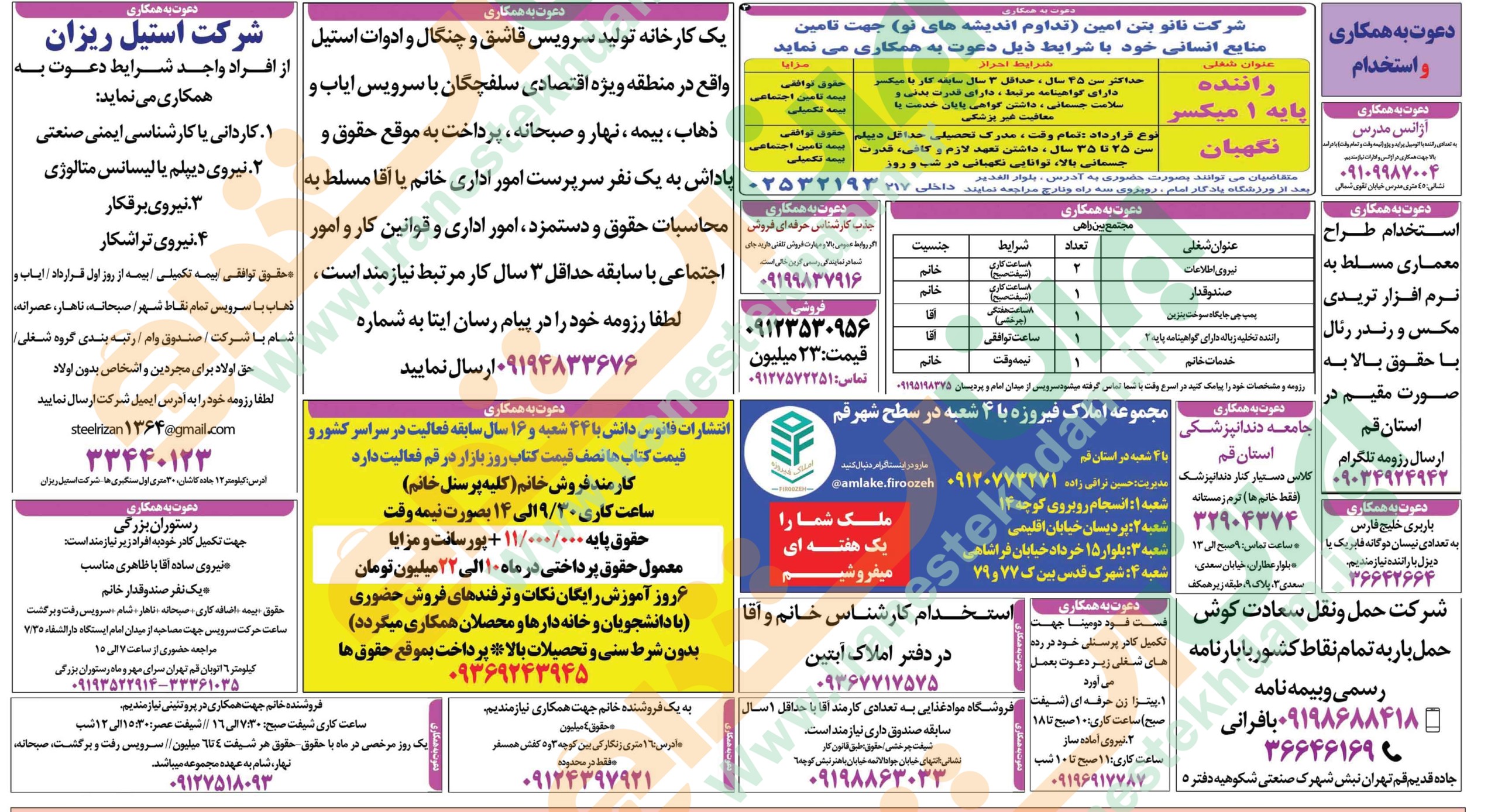 روزنامه استخدامی استان قم | دوشنبه 19 دی 1401