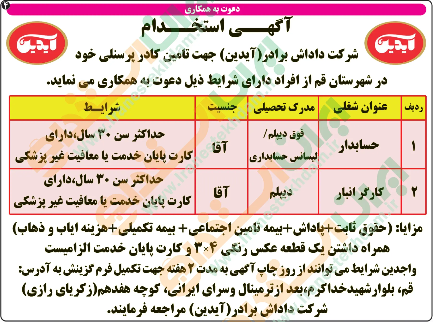 روزنامه استخدامی استان قم | سهشنبه 22 مهر 1404