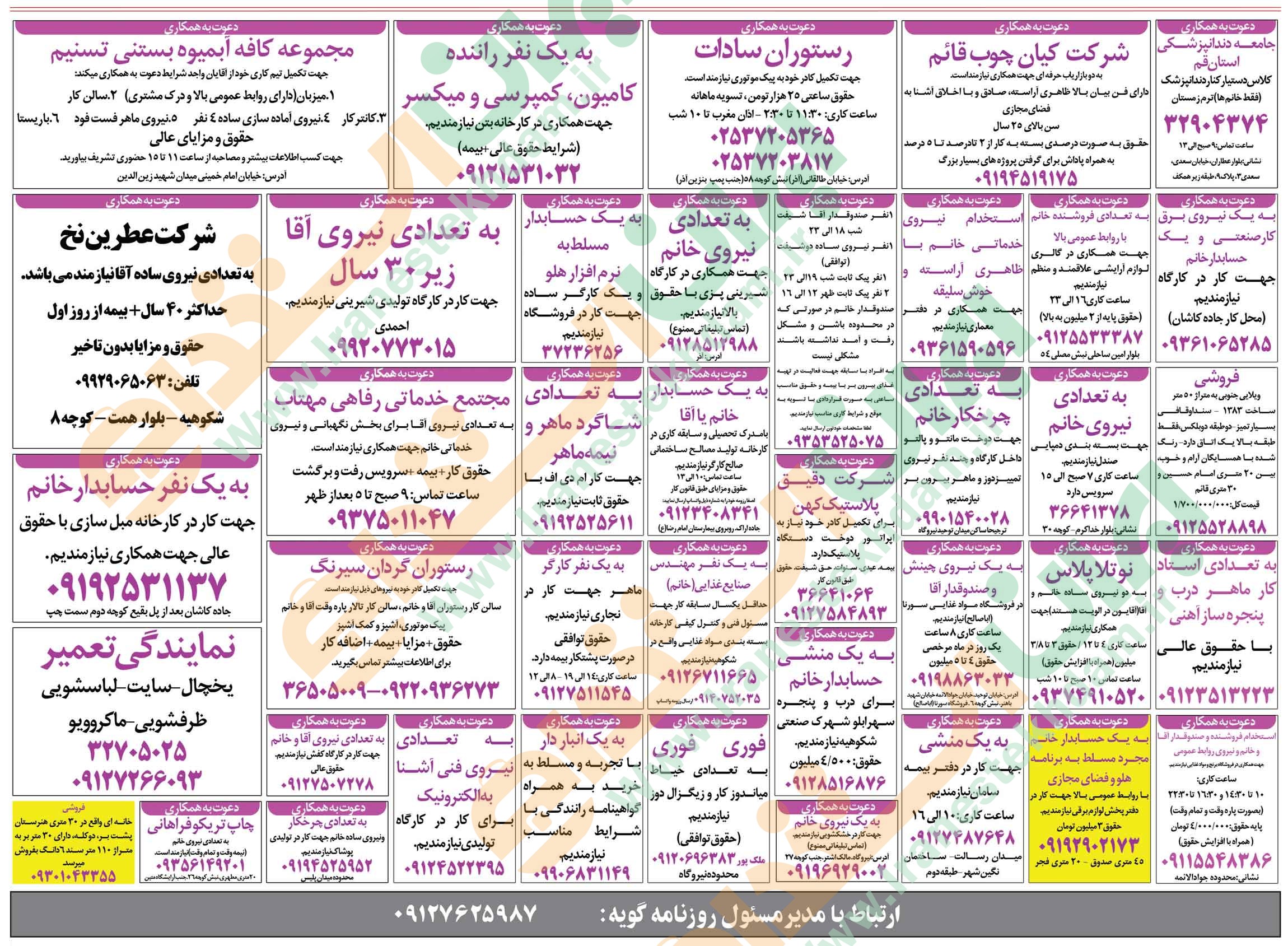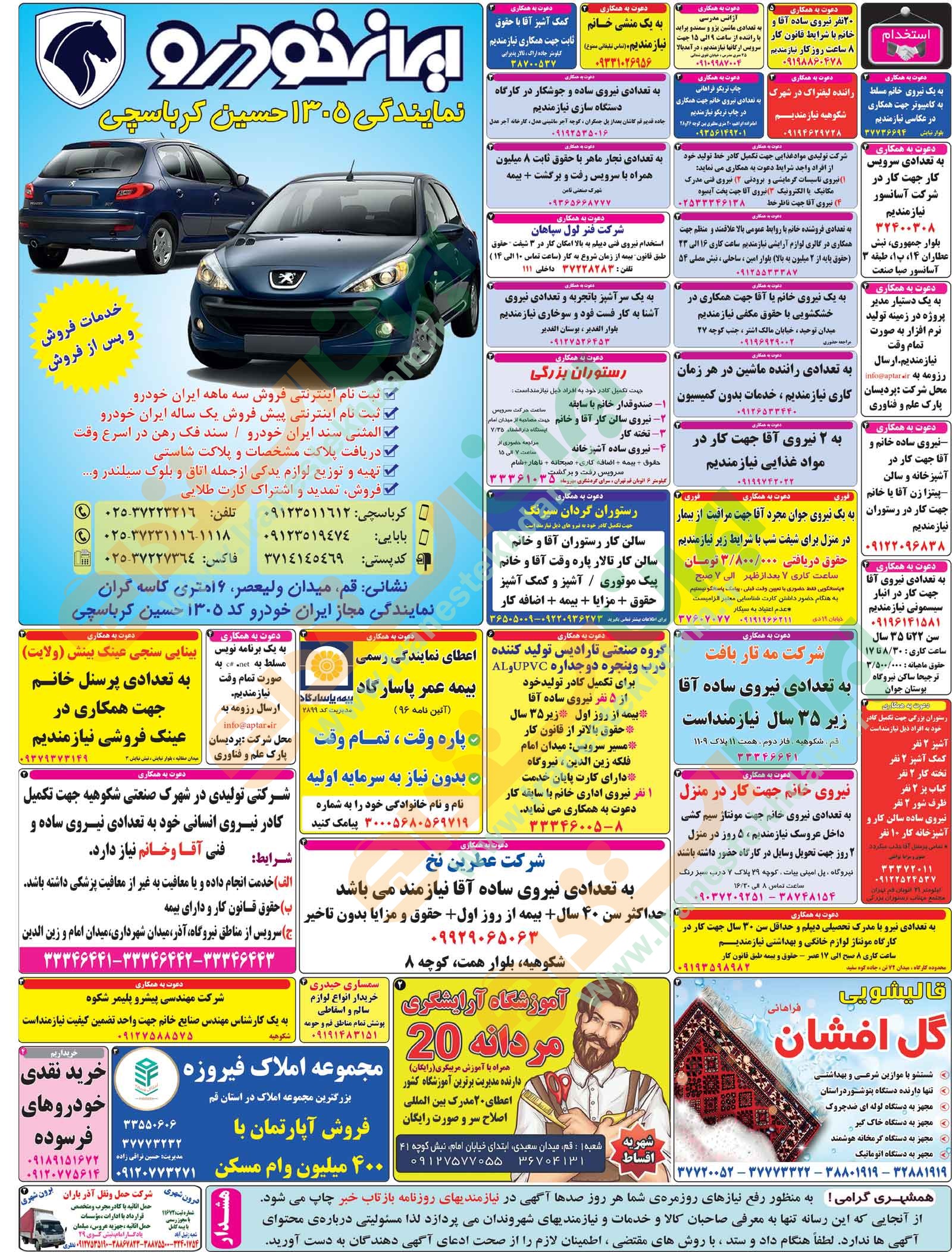 روزنامه استخدامی استان قم | چهارشنبه 29 دی 1400