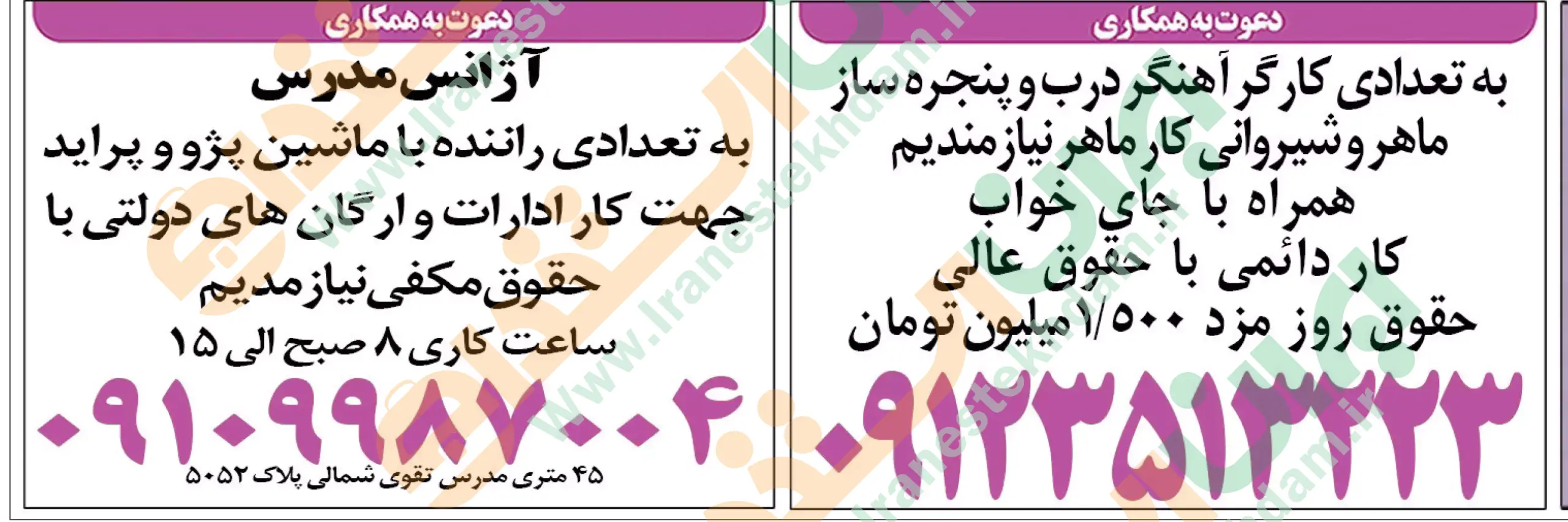 ♦ در صورتی که به دنبال موقعیت های شغلی روز قم هستید، میتوانید از طریق سایت ایران استخدام از یکی از روش های دریافت آگهی های استخدامی “از طریق ایمیل و پیامک – از طریق اپلیکیشن اختصاصی ایران استخدام – از طریق کانال تلگرام ایران استخدام” اقدام نمایید.
