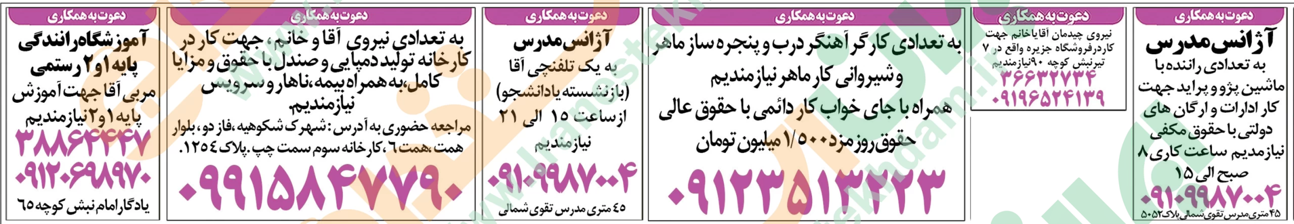 روزنامه استخدامی استان قم | شنبه ۶ اردیبهشت ۱۴۰۴