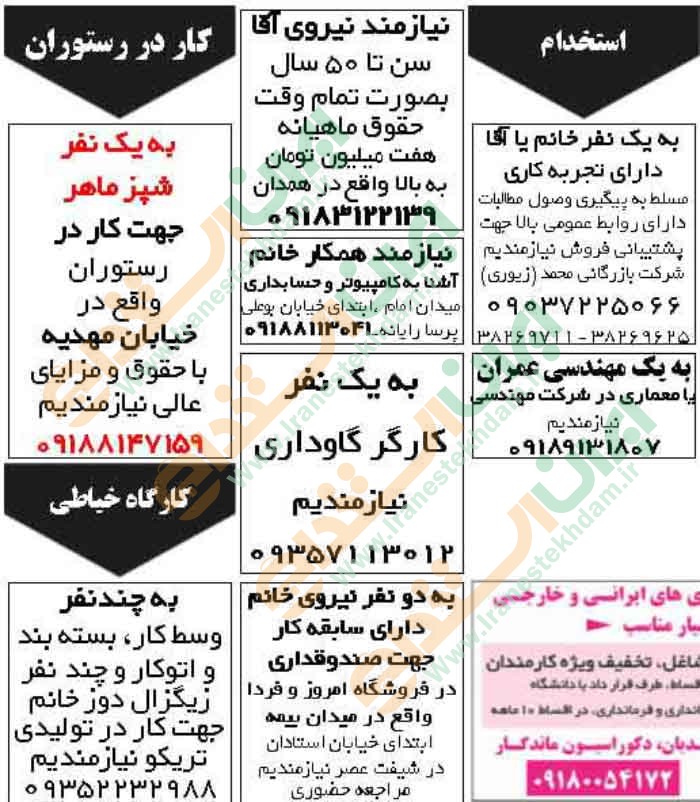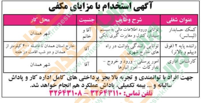 همچنین برای مشاهده صفحه نیازمندی های استخدامی استان همدان اینجا کلیک نمایید