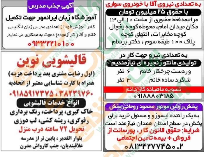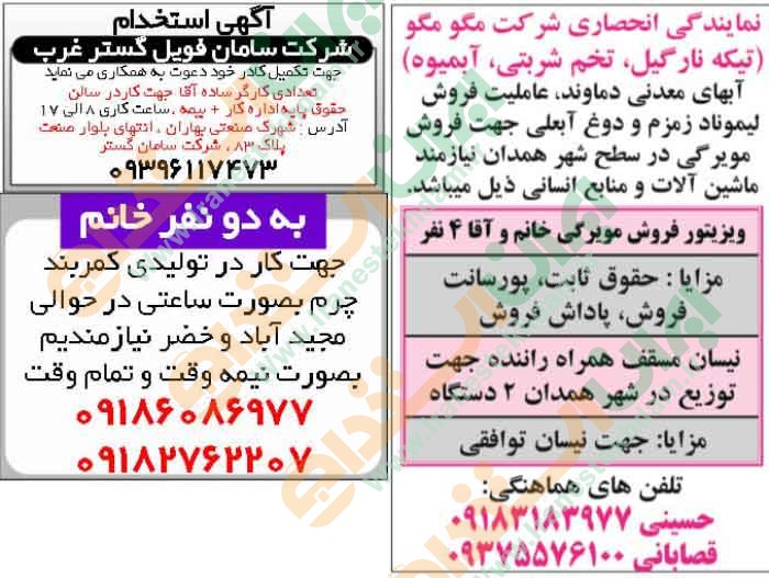 روزنامه استخدامی استان همدان | چهارشنبه 10 مرداد 1403