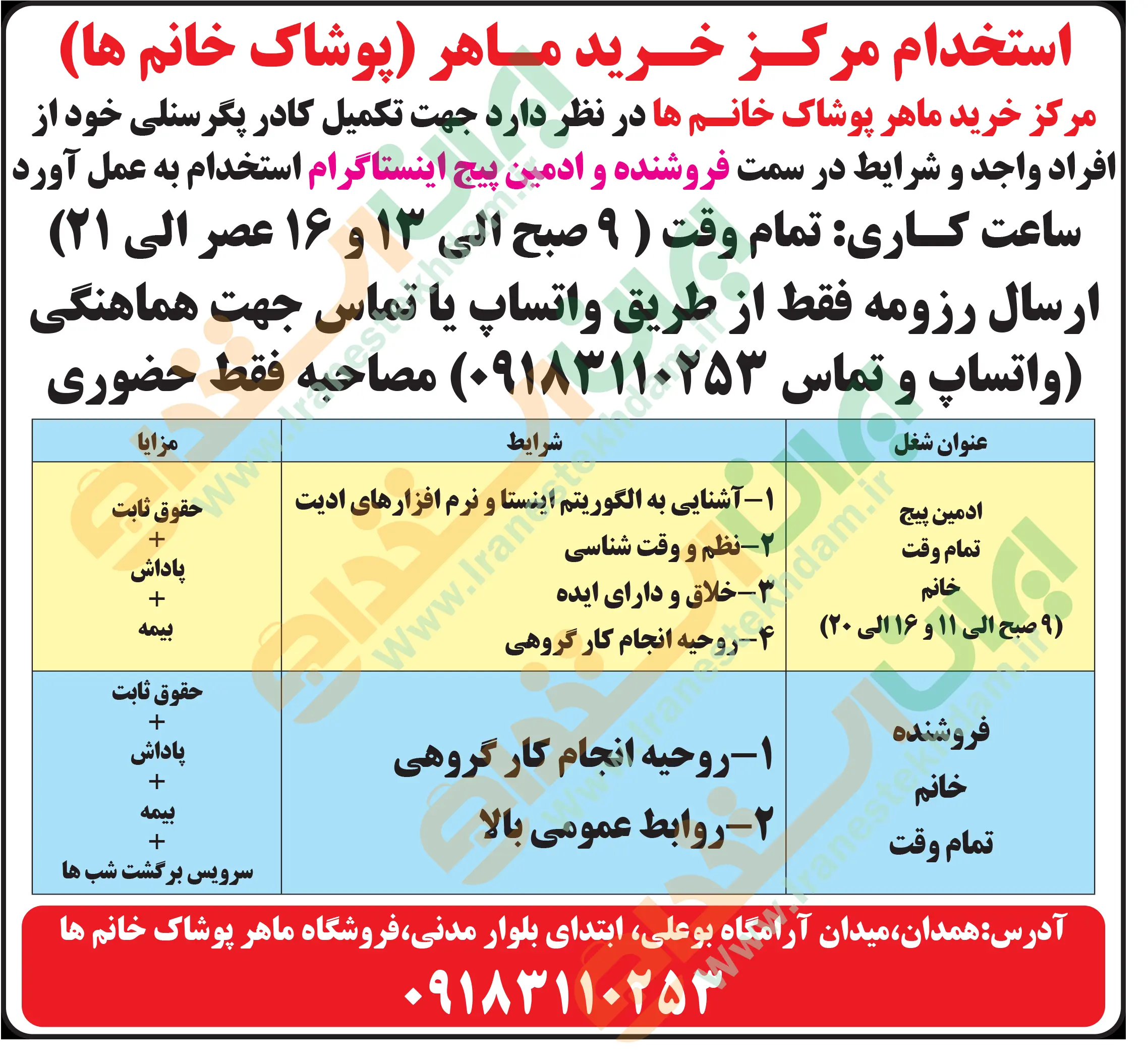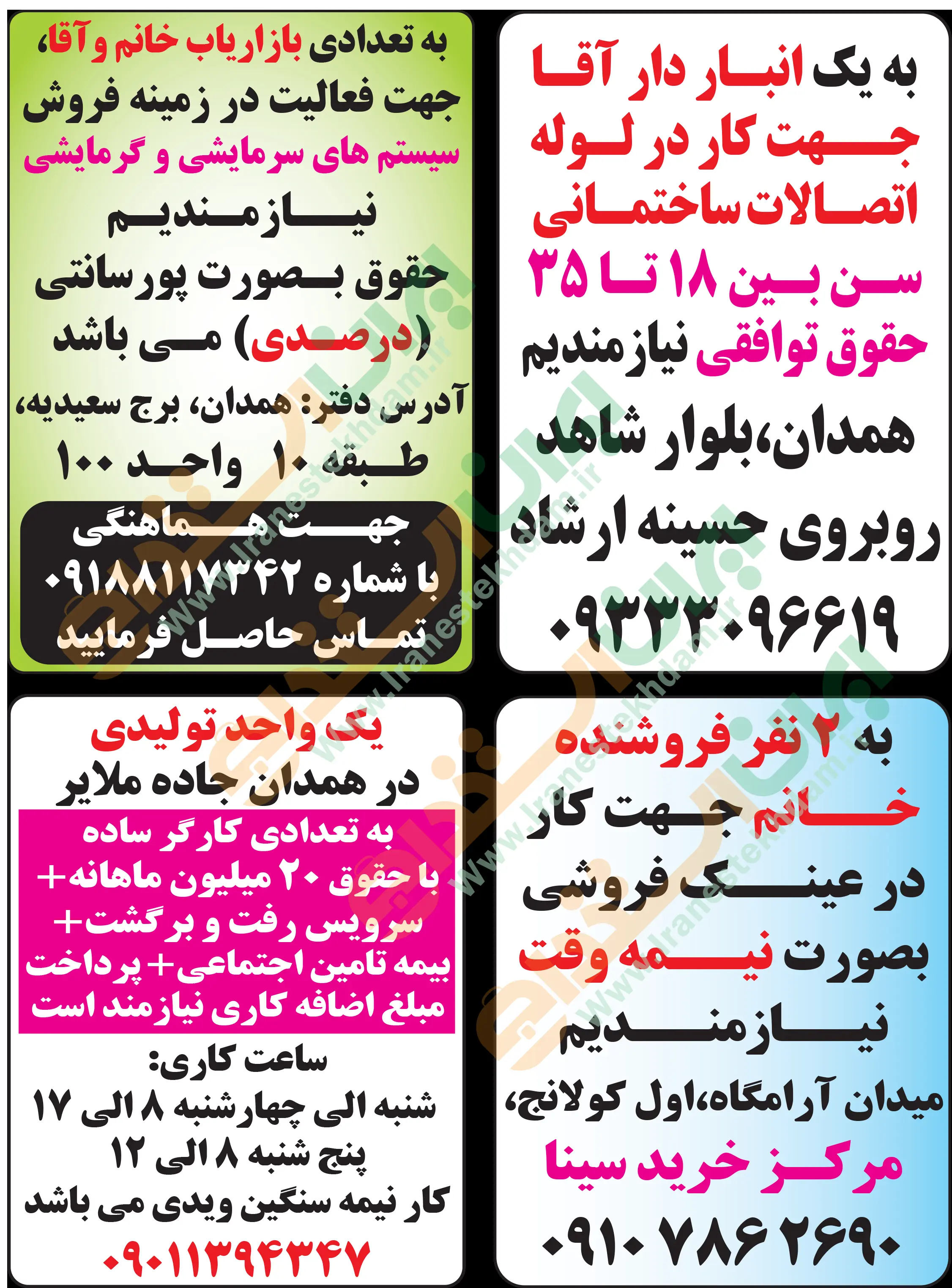 روزنامه استخدامی استان همدان | چهارشنبه ۱۲ آذر ۱۴۰۴