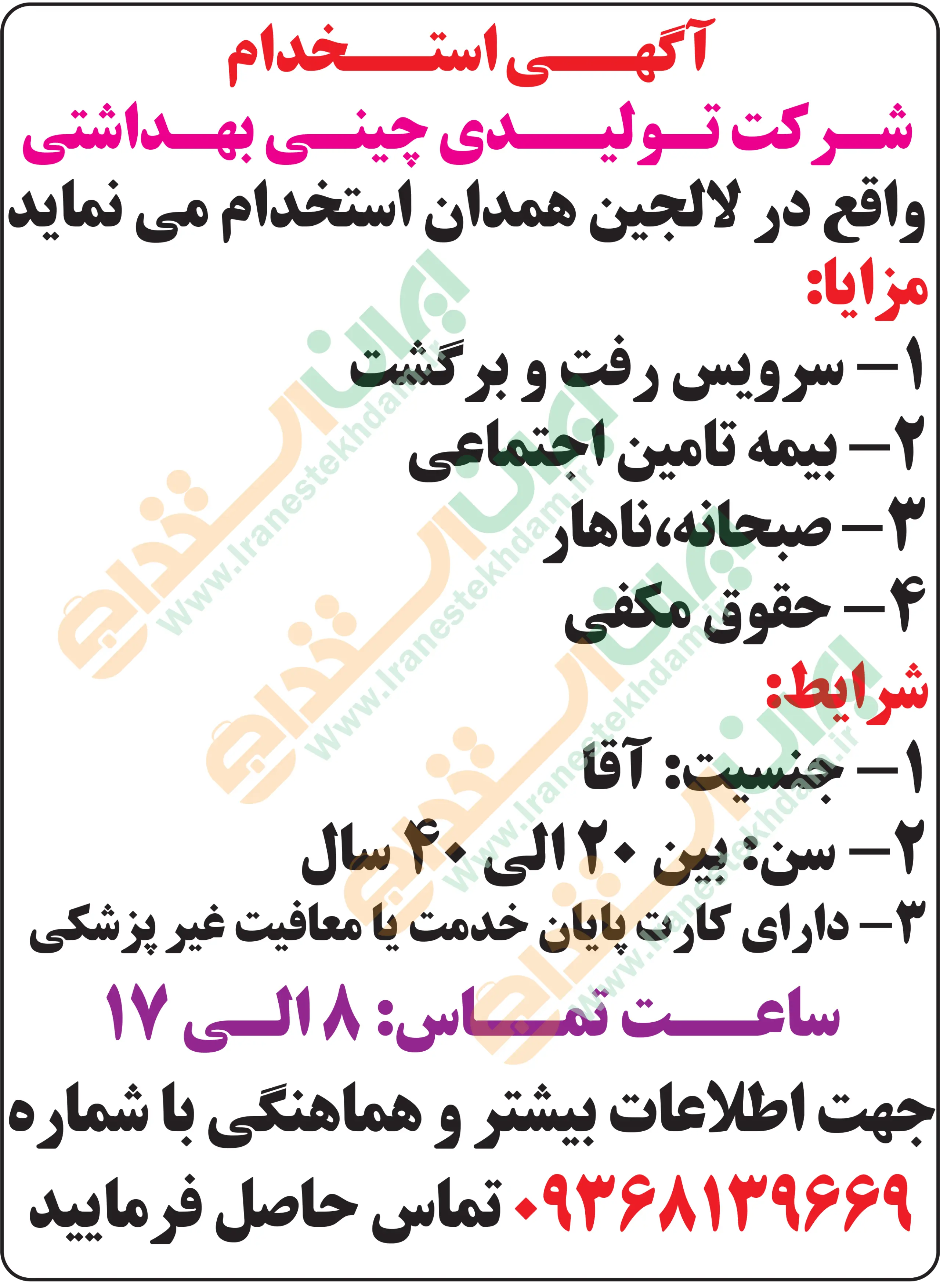 همچنین برای مشاهده صفحه نیازمندی های استخدامی استان همدان اینجا کلیک نمایید