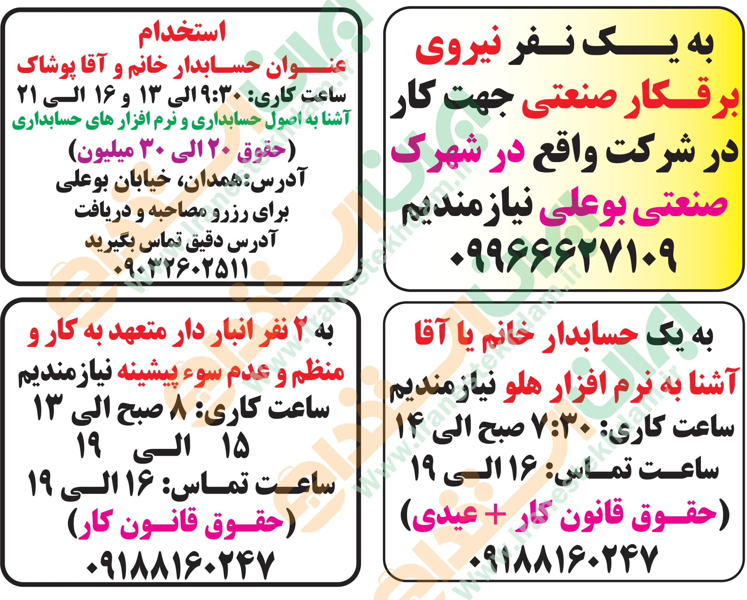 روزنامه استخدامی استان همدان | چهارشنبه ۱۴ آبان ۱۴۰۴