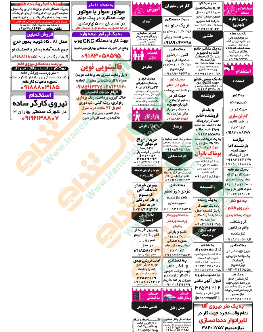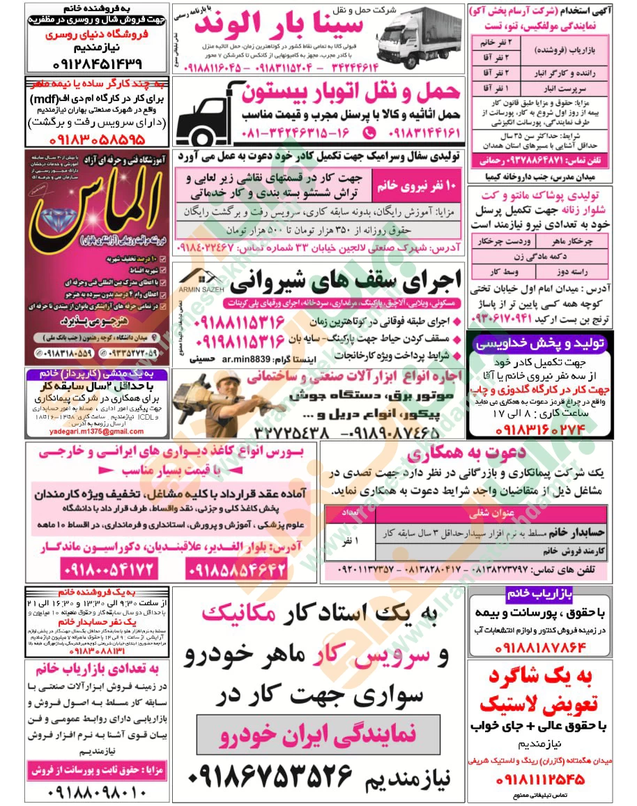 روزنامه استخدامی استان همدان | شنبه 14 مهر 1403