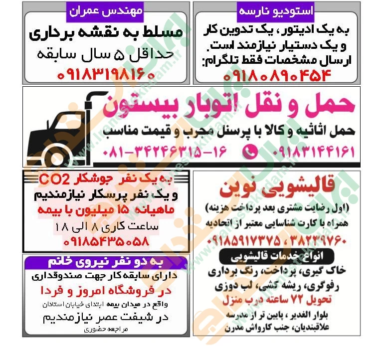 روزنامه استخدامی استان همدان | چهارشنبه 19 دی 1403