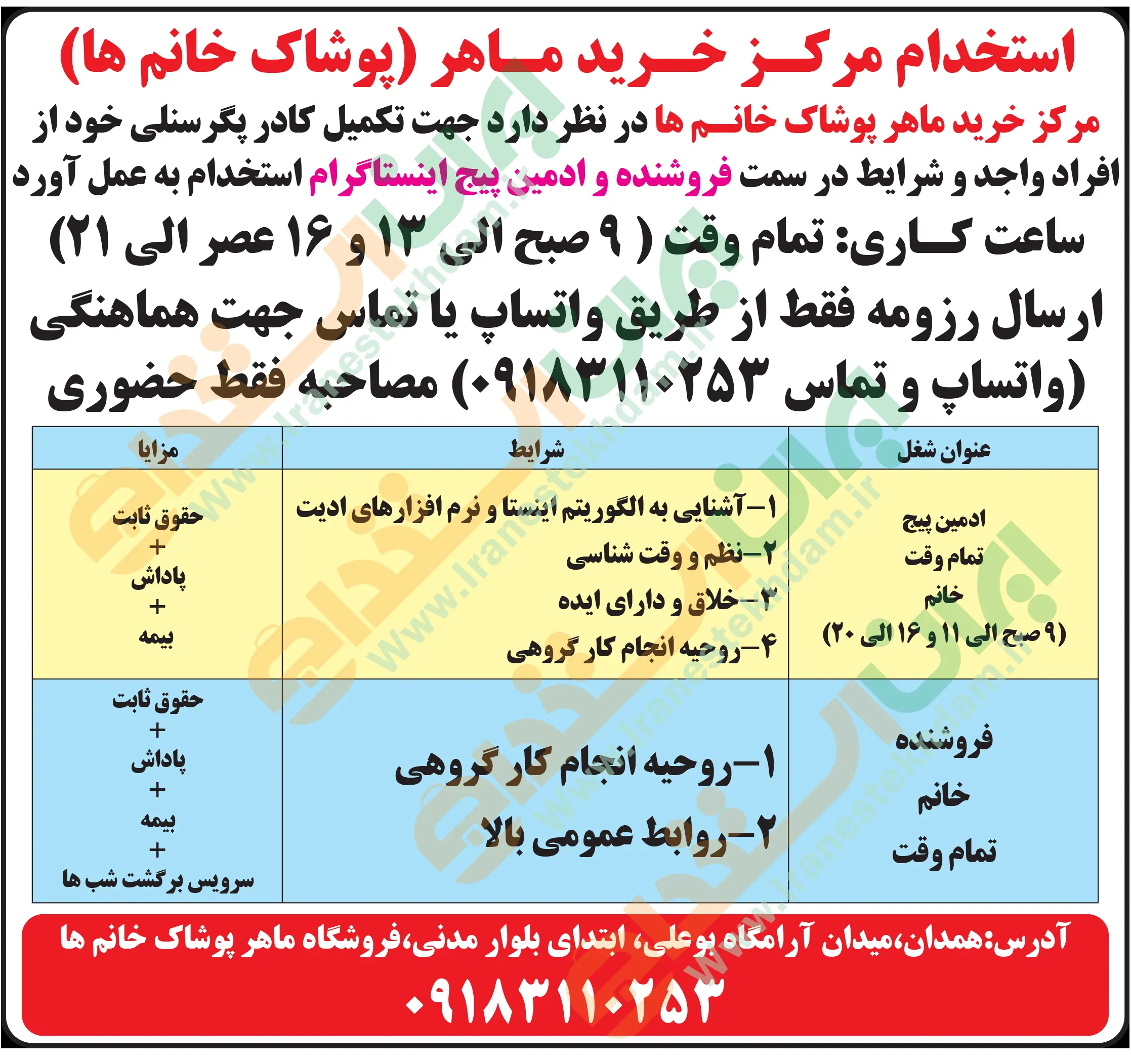♦ در صورتی که به دنبال موقعیت های شغلی روز همدان هستید، میتوانید از طریق سایت ایران استخدام از یکی از روش های دریافت آگهی های استخدامی “از طریق ایمیل و پیامک – از طریق اپلیکیشن اختصاصی ایران استخدام – از طریق کانال تلگرام ایران استخدام” اقدام نمایید.