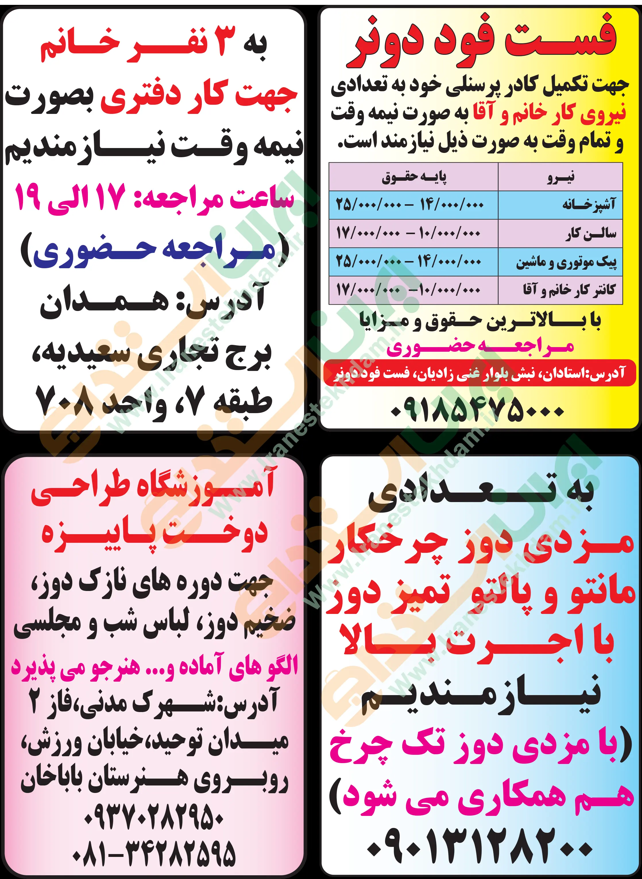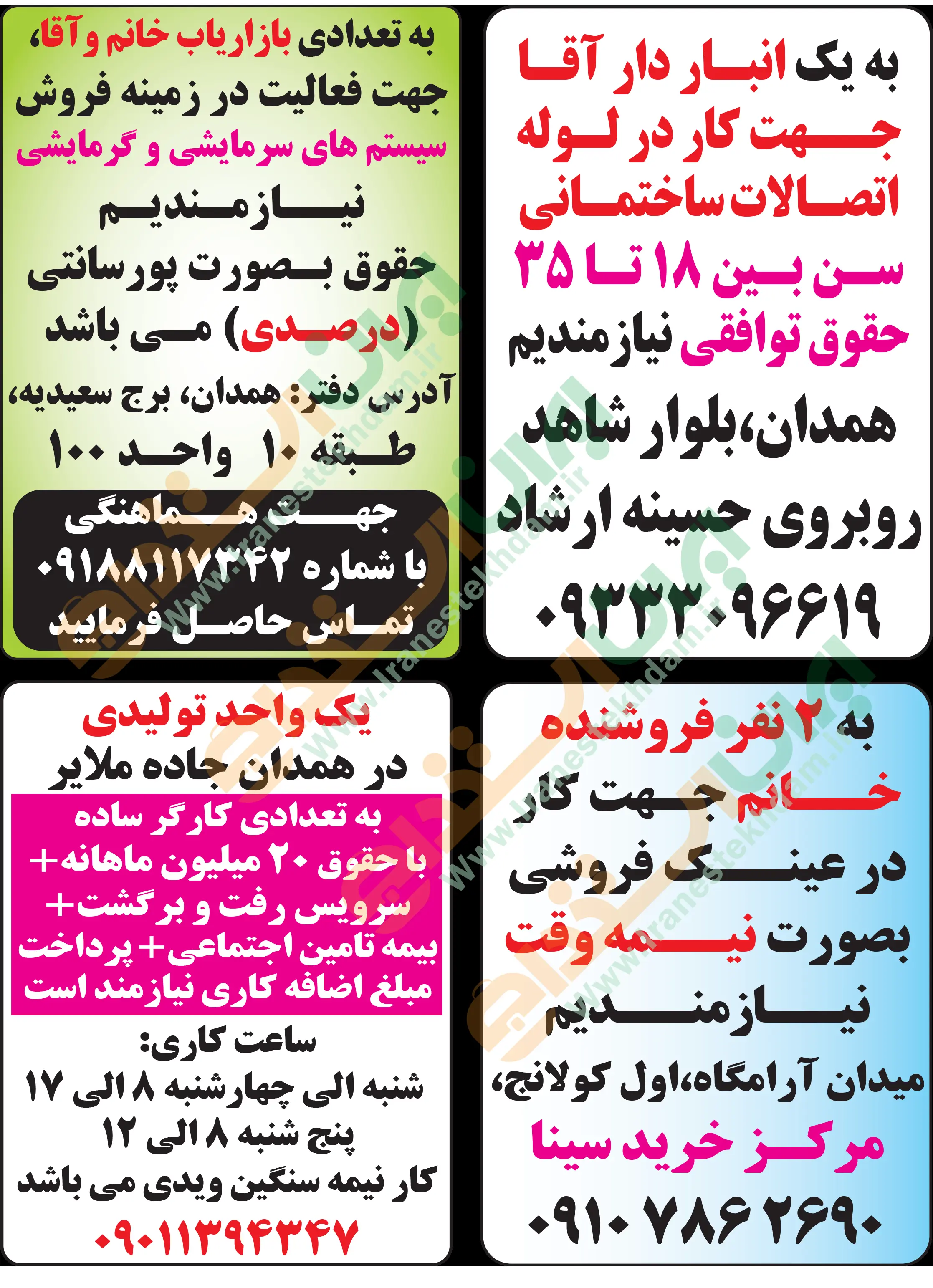 روزنامه استخدامی استان همدان | سهشنبه 2 دی 1404