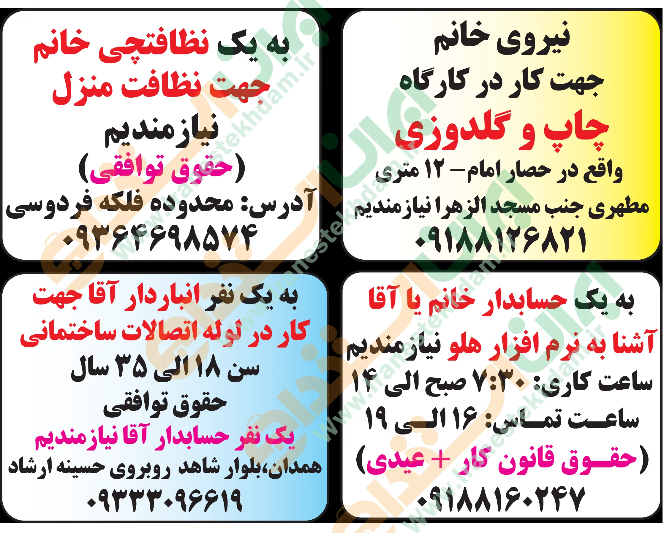 همچنین برای مشاهده صفحه نیازمندی های استخدامی استان همدان اینجا کلیک نمایید