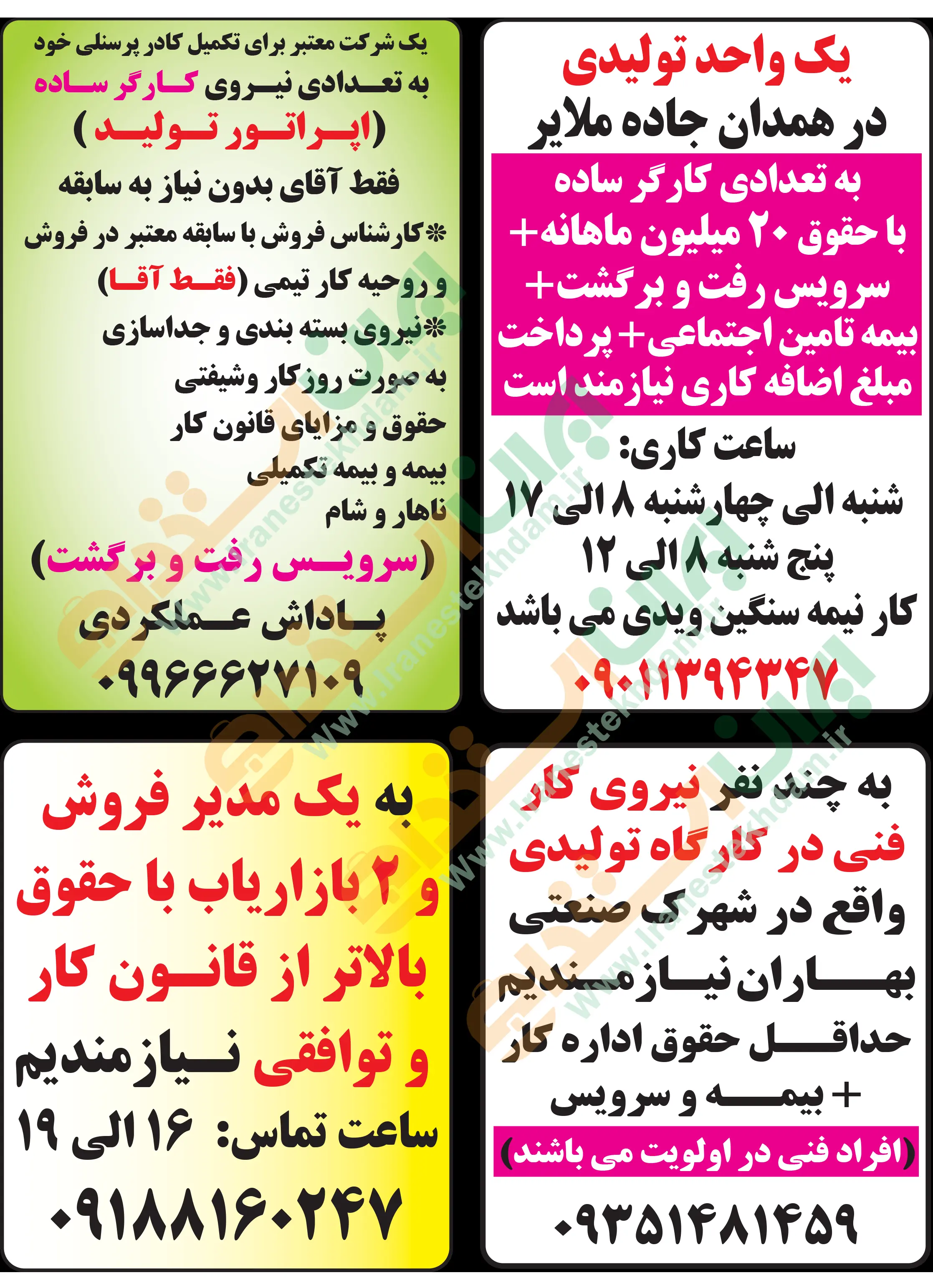 روزنامه استخدامی استان همدان | سه شنبه 20 آبان 1404