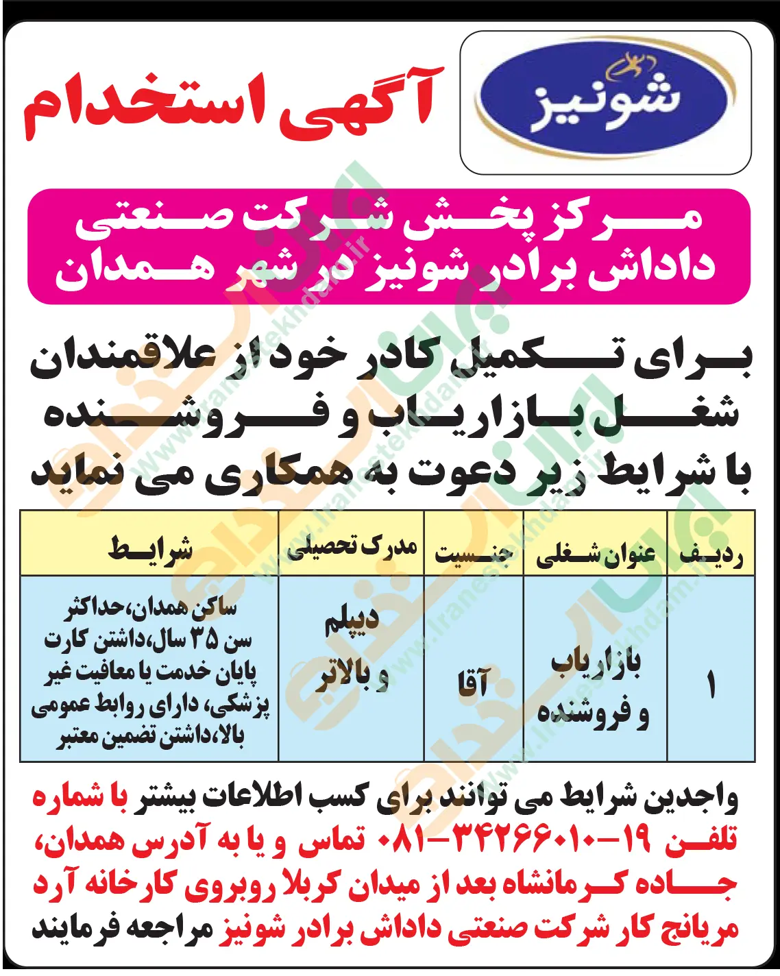 ♦ در صورتی که به دنبال موقعیت های شغلی روز همدان هستید، میتوانید از طریق سایت ایران استخدام از یکی از روش های دریافت آگهی های استخدامی “از طریق ایمیل و پیامک – از طریق اپلیکیشن اختصاصی ایران استخدام – از طریق کانال تلگرام ایران استخدام” اقدام نمایید.