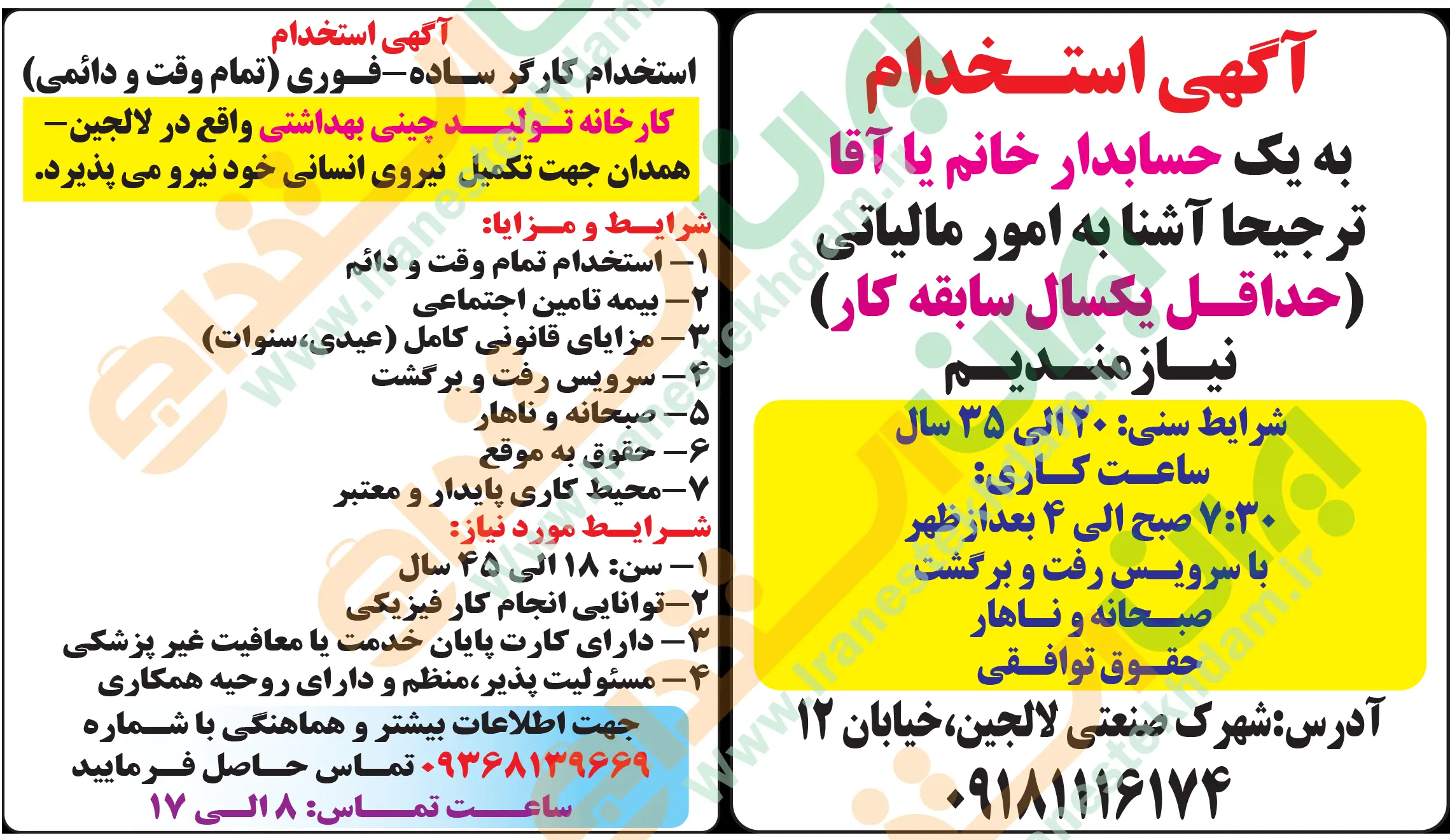 همچنین برای مشاهده صفحه نیازمندی های استخدامی استان همدان اینجا کلیک نمایید
