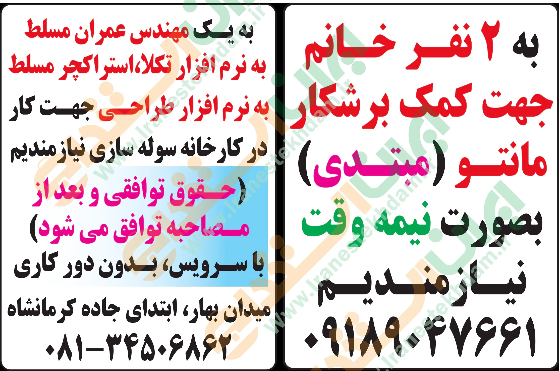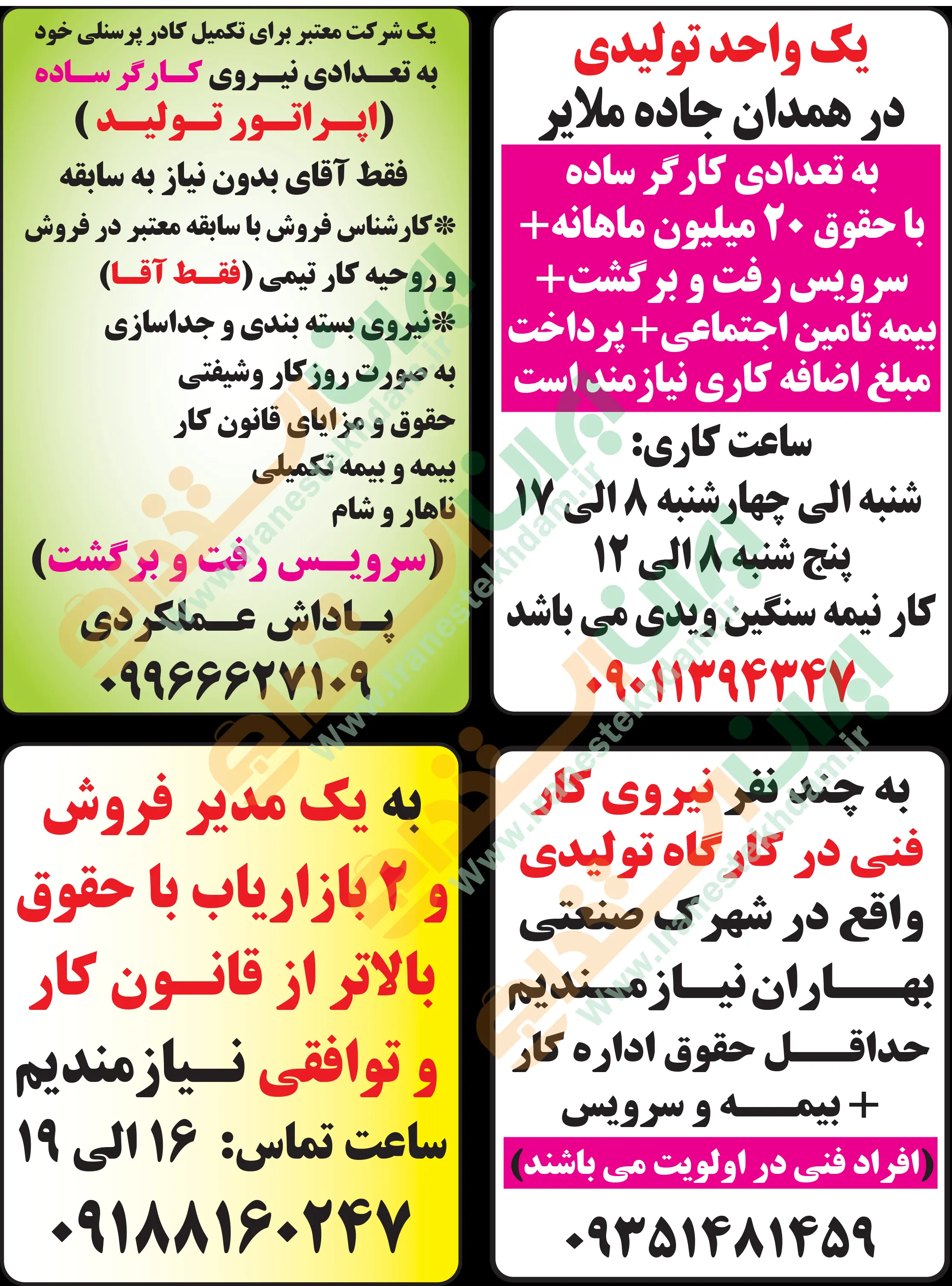 همچنین برای مشاهده صفحه نیازمندی های استخدامی استان همدان اینجا کلیک نمایید