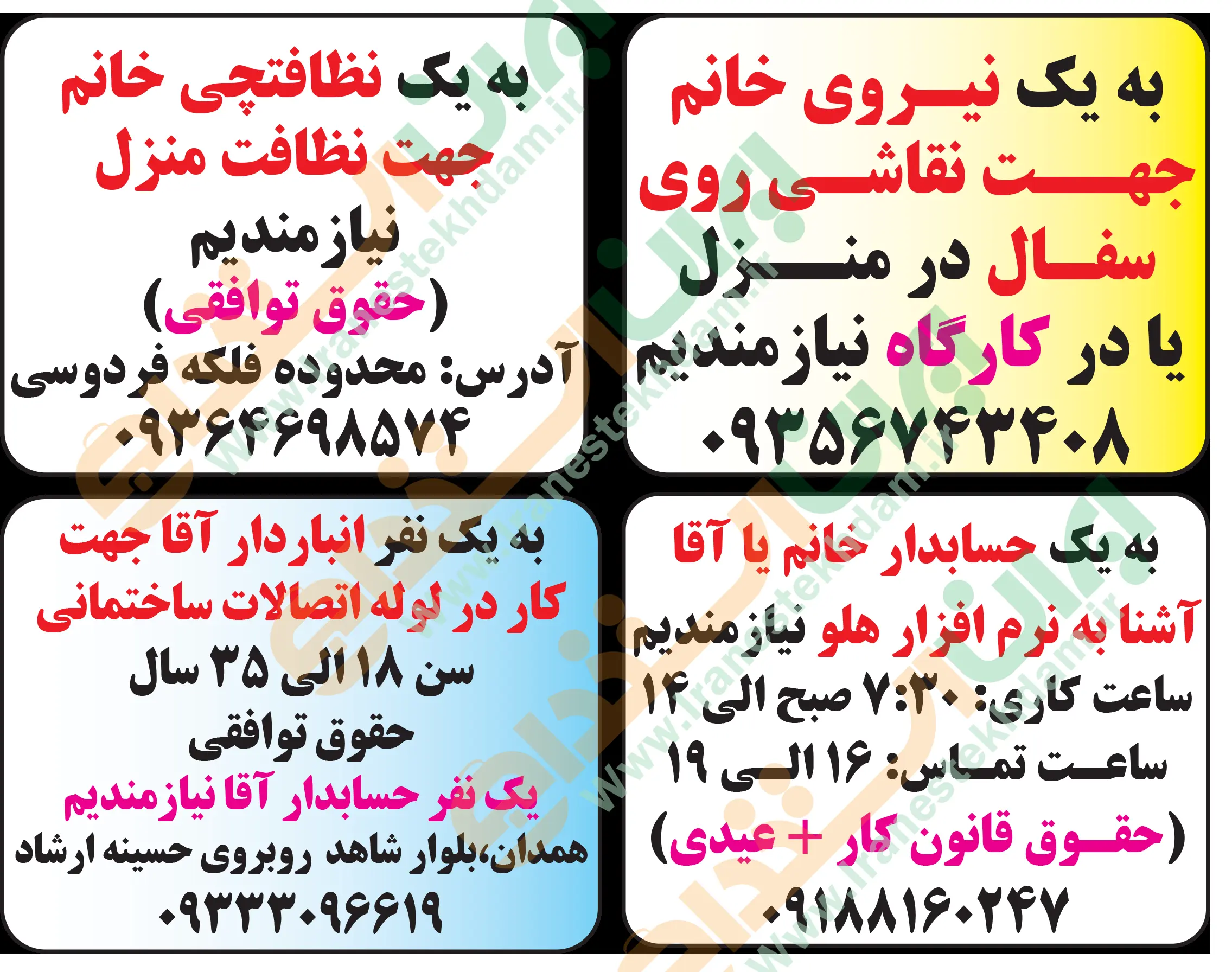 روزنامه استخدامی استان همدان | دوشنبه 26 آبان 1404