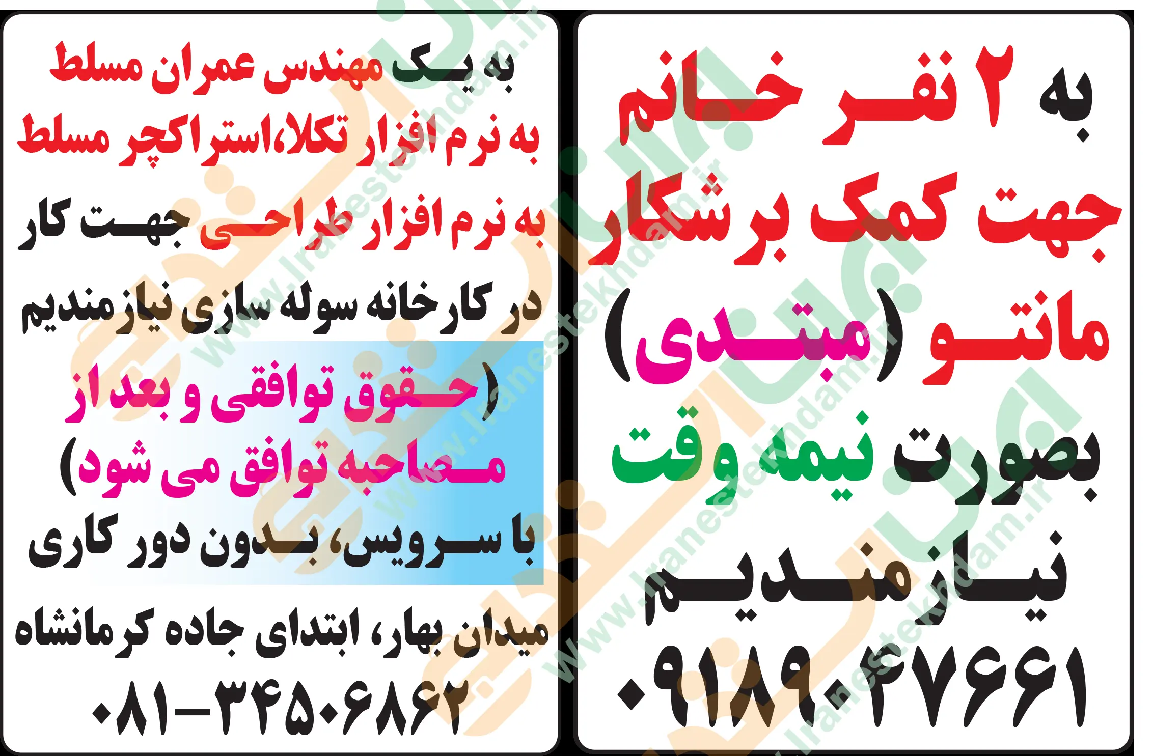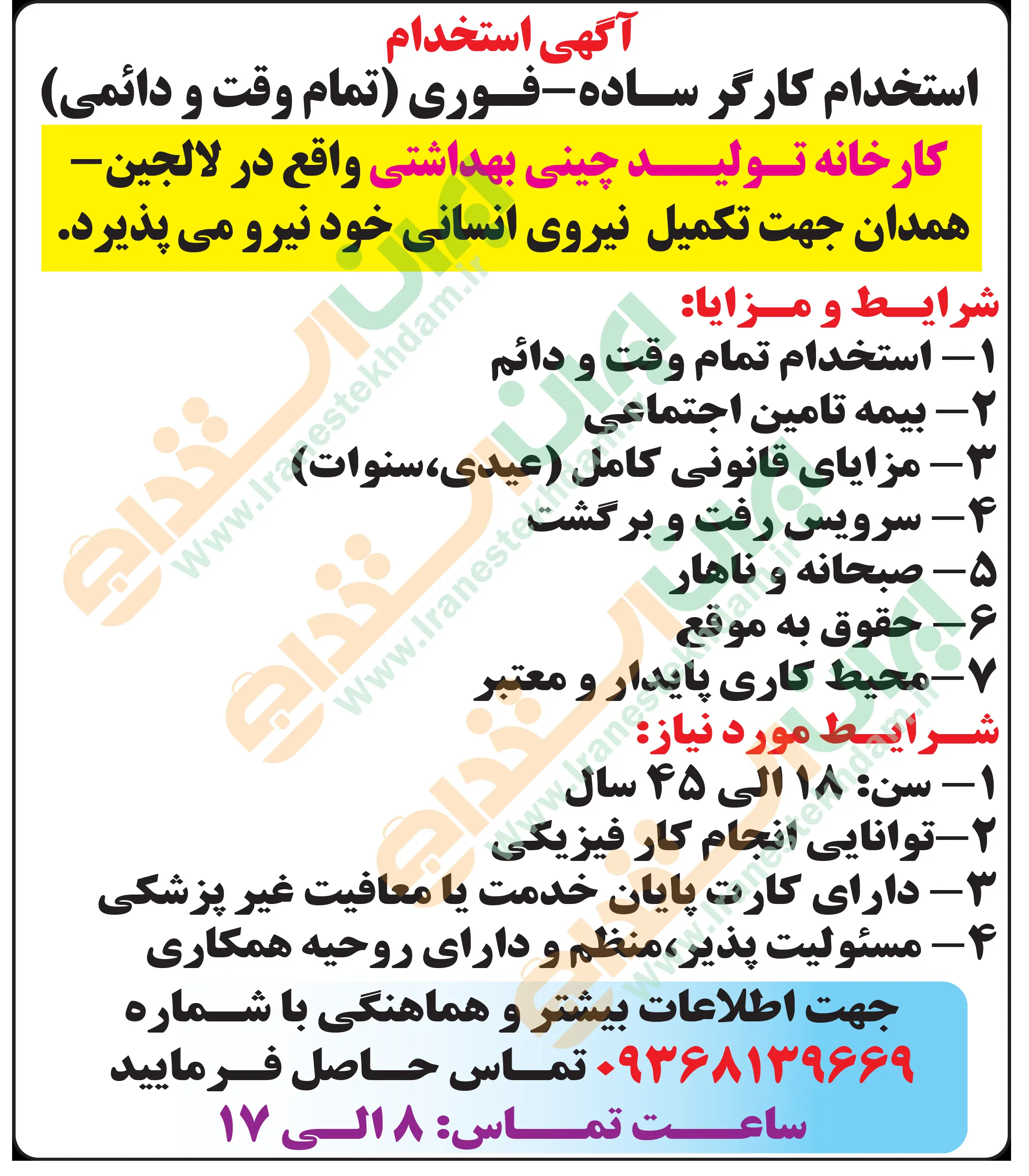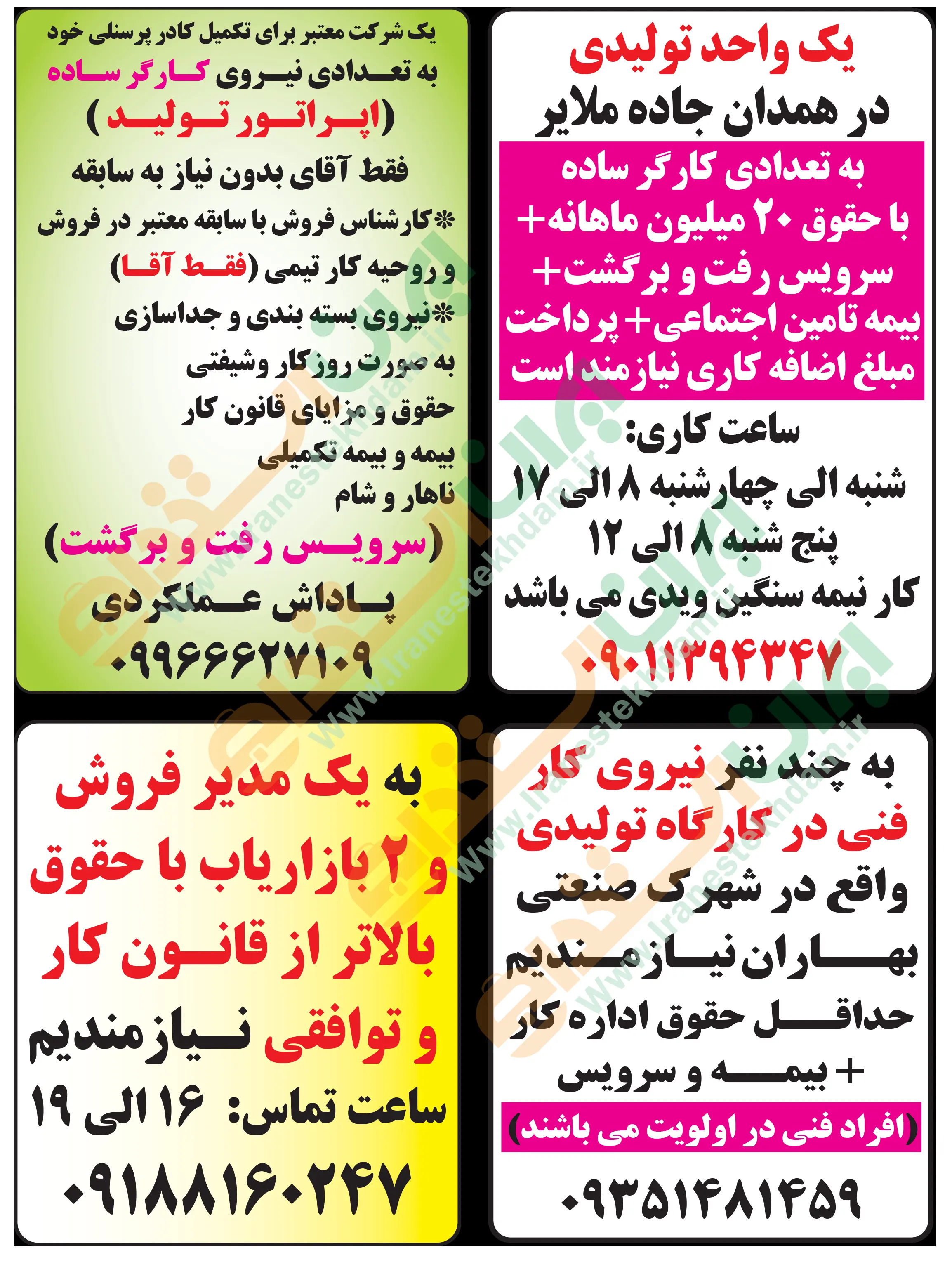 همچنین برای مشاهده صفحه نیازمندی های استخدامی استان همدان اینجا کلیک نمایید