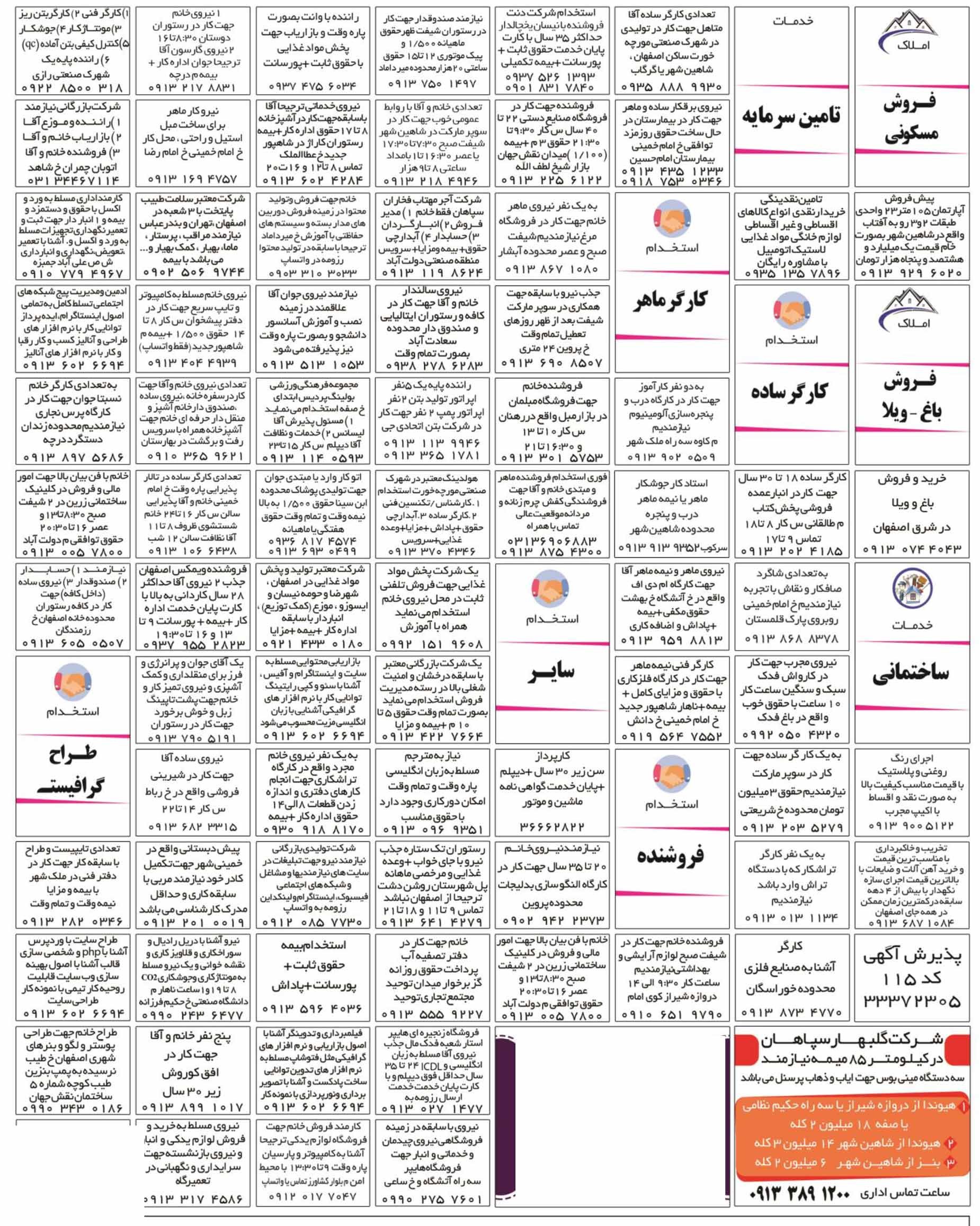 روزنامه استخدامی استان اصفهان | عصر یکشنبه ۱۷ مرداد ۱۴۰۰