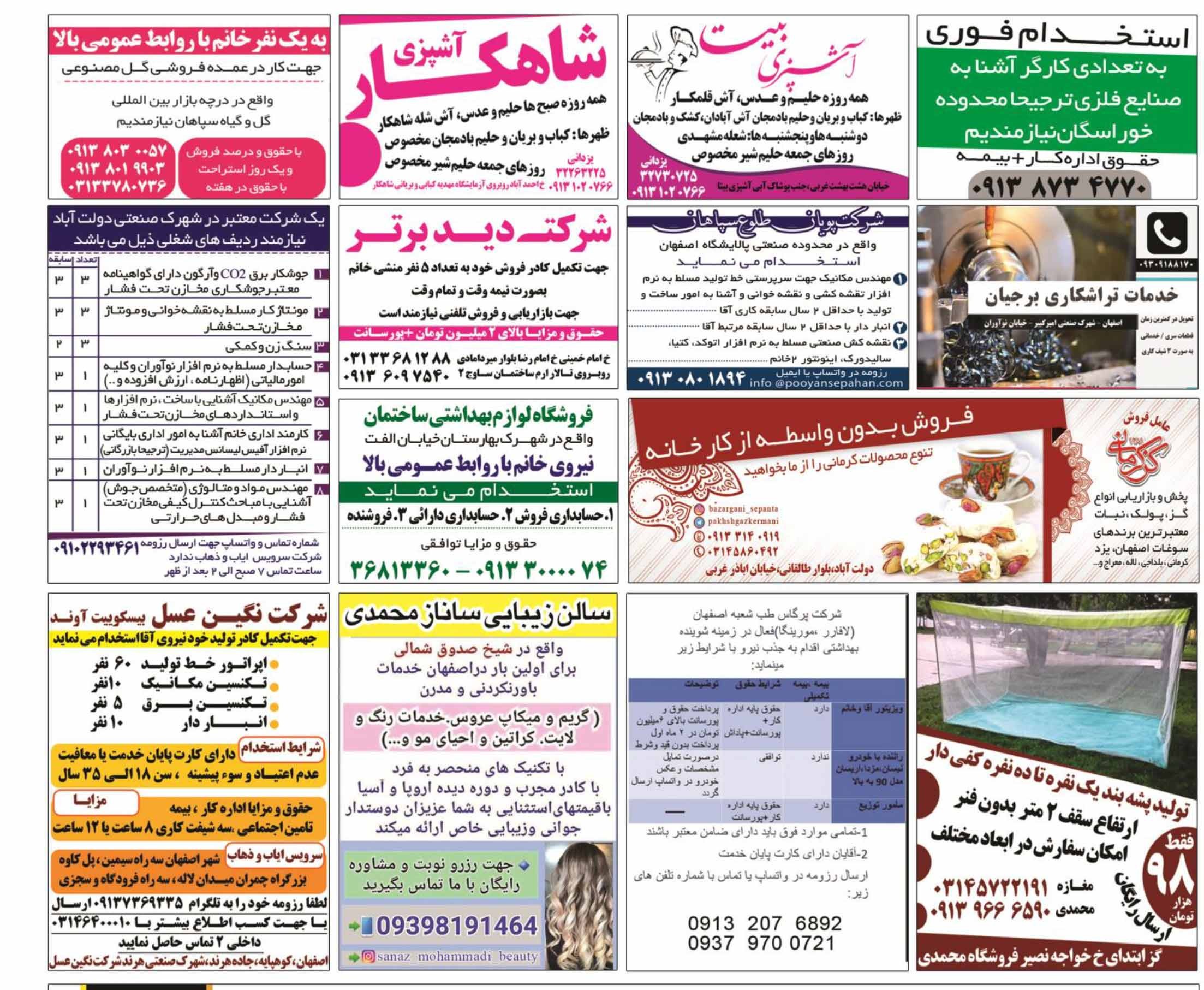 روزنامه استخدامی استان اصفهان | صبح یکشنبه 17 مرداد 1400