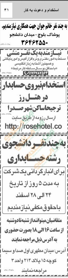 همچنین برای مشاهده صفحه نیازمندی های استخدامی استان فارس اینجا کلیک نمایید