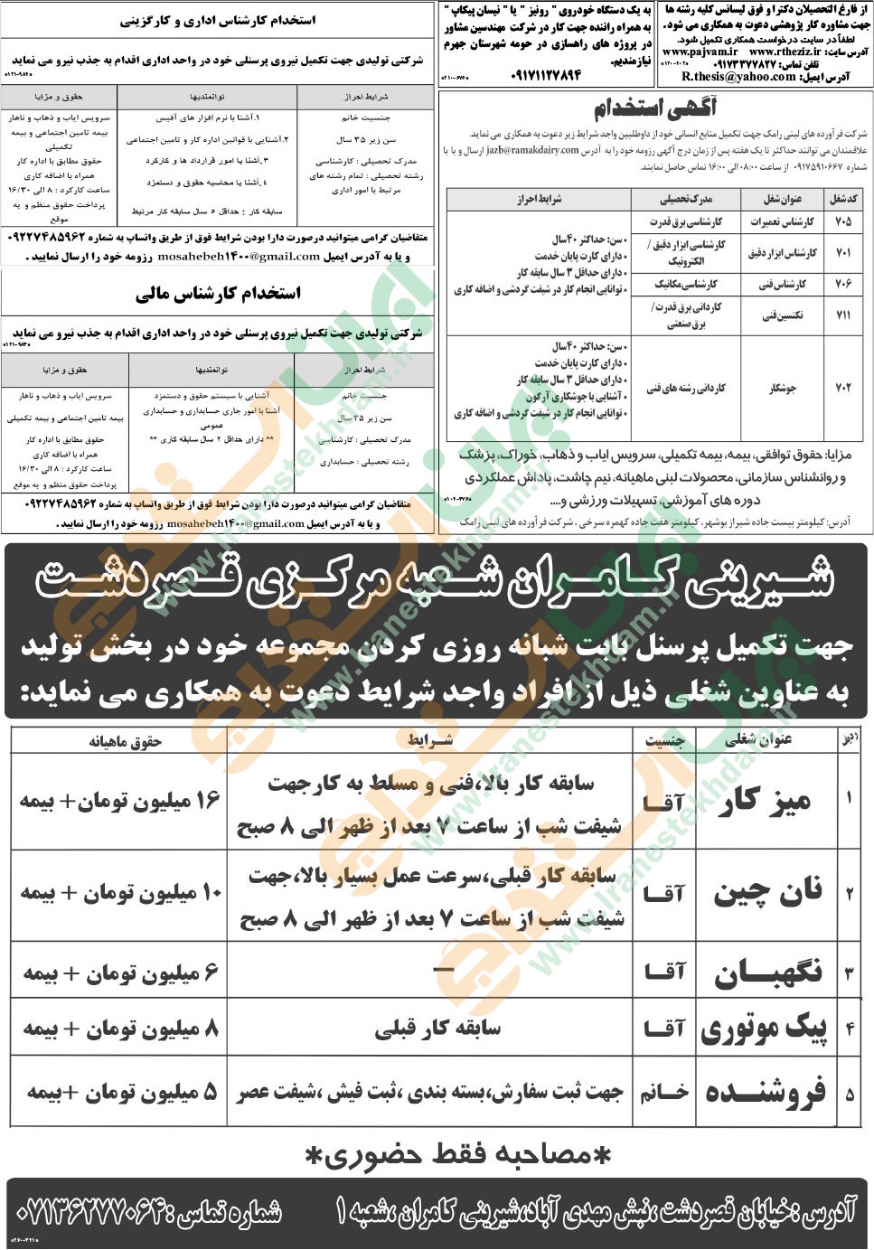 روزنامه استخدامی فارس و شهر شیراز | شنبه ۳۰ بهمن ۱۴۰۰