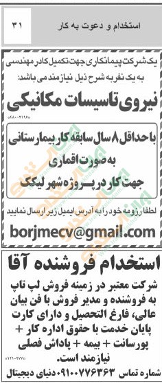 (نیازمندی های استخدامی)