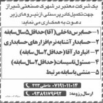 روزنامه استخدامی فارس و شهر شیراز | دوشنبه ۹ اسفند ۱۴۰۰