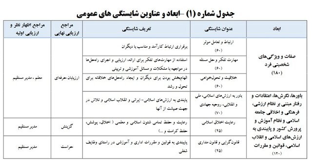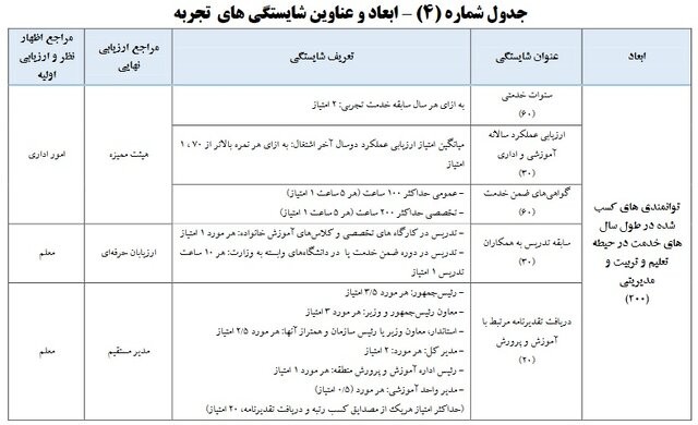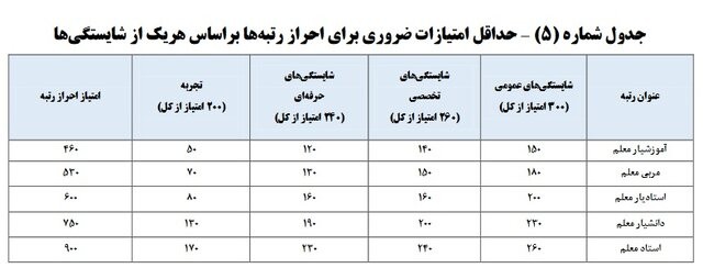 شرح جزئیات امتیازات شایستگی معلمی در طرح رتبه بندی