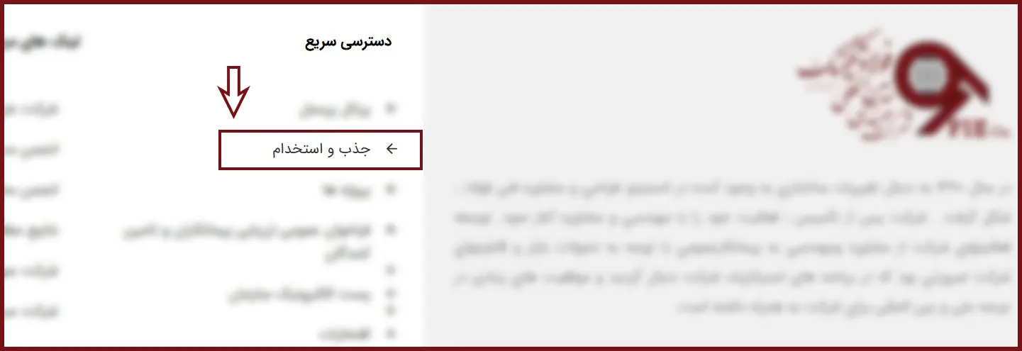 پس از ورود به صفحه اصلی فولاد تکنیک، اسکرول کرده و از بخش پایین صفحه، در قسمت «دسترسیهای سریع»، بر روی گزینه «جذب و استخدام» کلیک نمایید.