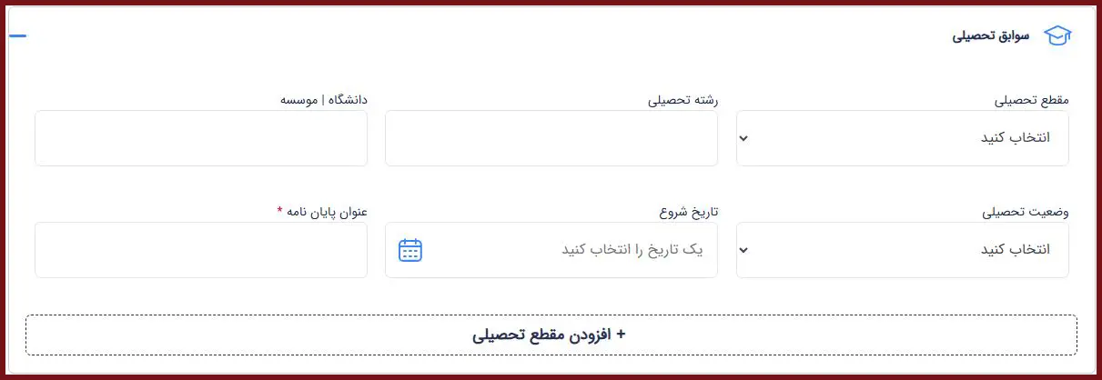 مرحله چهارم: تکمیل اطلاعات تحصیلی