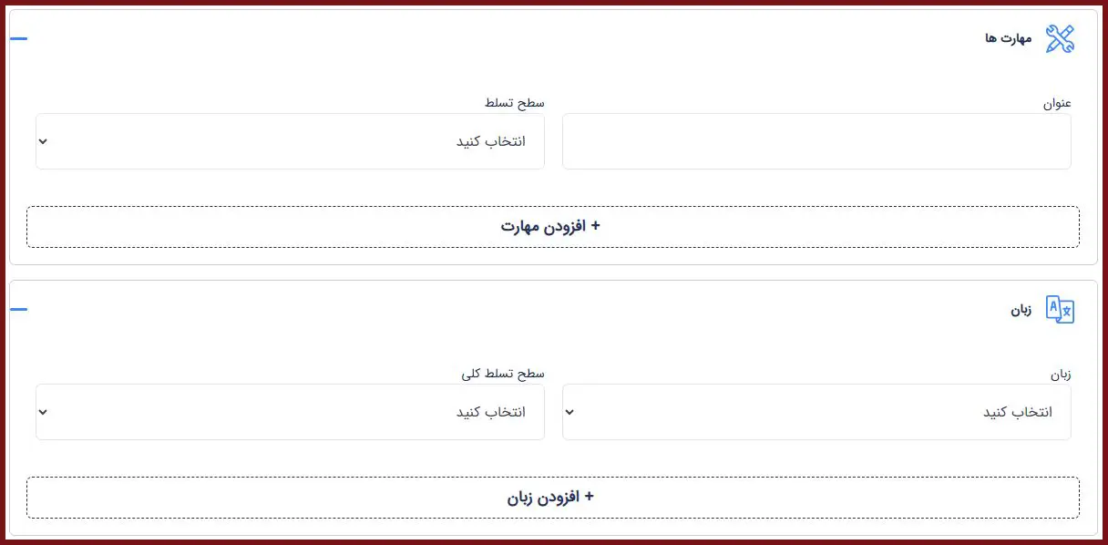 در این مرحله، در صورت داشتن مهارتها و آشنایی با زبانهای خارجی، اطلاعات مربوط به این بخش را تکمیل نمایید.