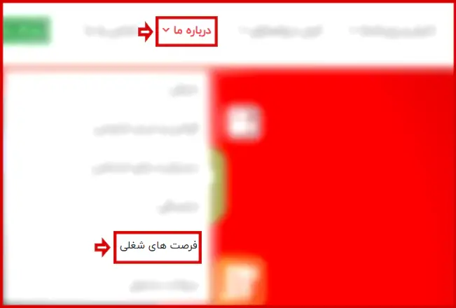 پس از ورود به سایت اصلی این شرکت، از نوار بالای صفحه، روی گزینه "درباره ما" کلیک کرده و در منوی بازشده، "فرصت های شغلی" را انتخاب نمایید.