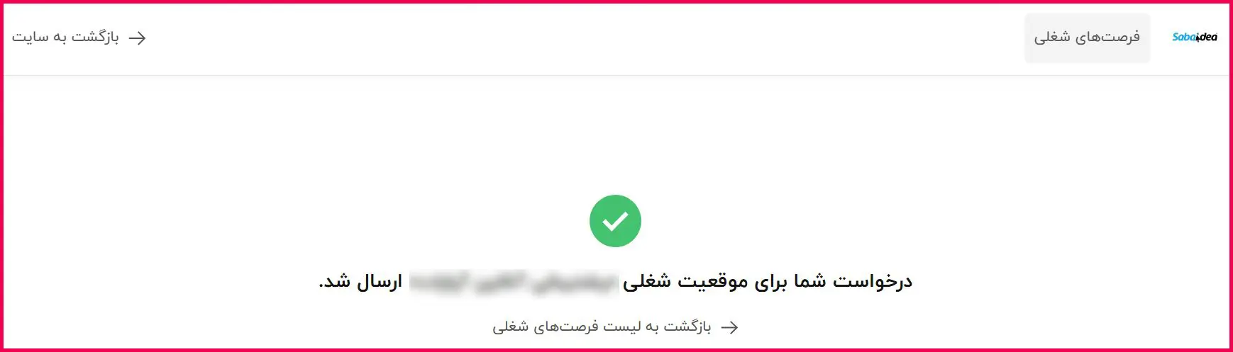پس از ارسال فرم استخدام، پیام تأیید مطابق تصویر زیر نمایش داده میشود. مشاهده این پیام به معنای ثبت موفق درخواست شما و قرار گرفتن آن در صف بررسی کارشناسان آپارات است. در صورت تطابق اطلاعات ارسالشده با شرایط شغل موردنظر، کارشناسان مربوطه با شما تماس خواهند گرفت.