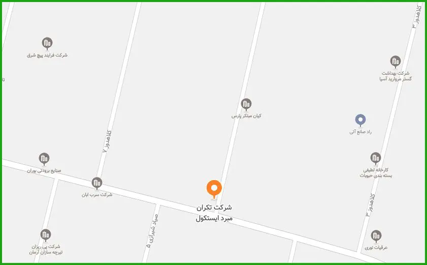 آدرس: قم، شهرک صنعتی شکوهیه، فاز ۲، خیابان کلاهدوز ۵