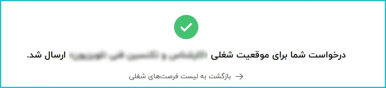 پس از ارسال فرم استخدام، پیام تأیید مطابق تصویر نمایش داده میشود. مشاهده این پیام به معنای ثبت موفق درخواست شما و قرار گرفتن آن در صف بررسی کارشناسان ایستکول است. در صورت تطابق اطلاعات ارسالشده با شرایط شغل موردنظر، کارشناسان مربوطه با شما تماس خواهند گرفت.