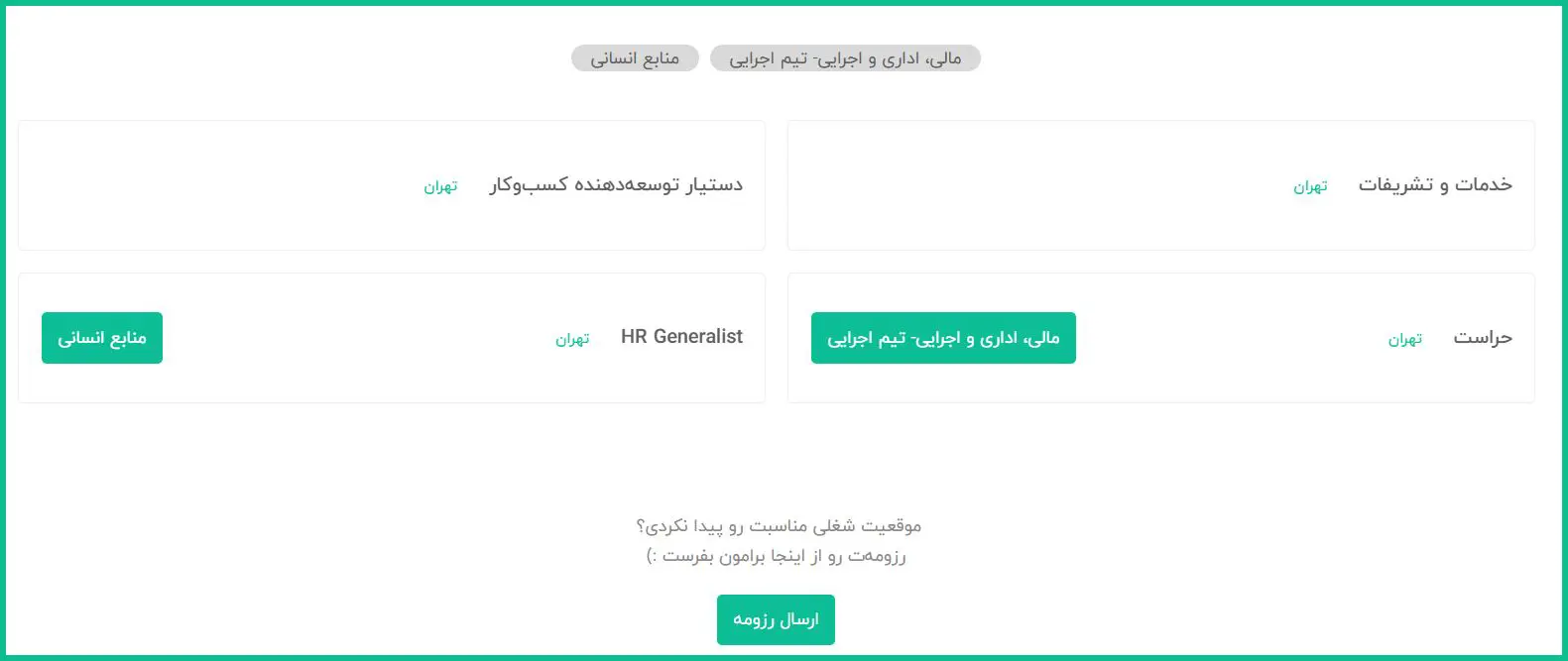 نکته: چنانچه شغل موردنظر شما در بخش «موقعیت شغلی» درج نشده باشد، جهت ارسال رزومه میتوانید مراحل زیر را طی کنید.