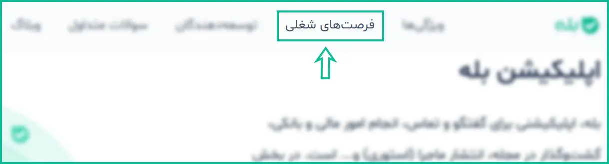پس از ورود به صفحه اصلی شرکت بله، از سربرگ بالای سایت بر روی گزینه «فرصتهای شغلی» کلیک نمایید.