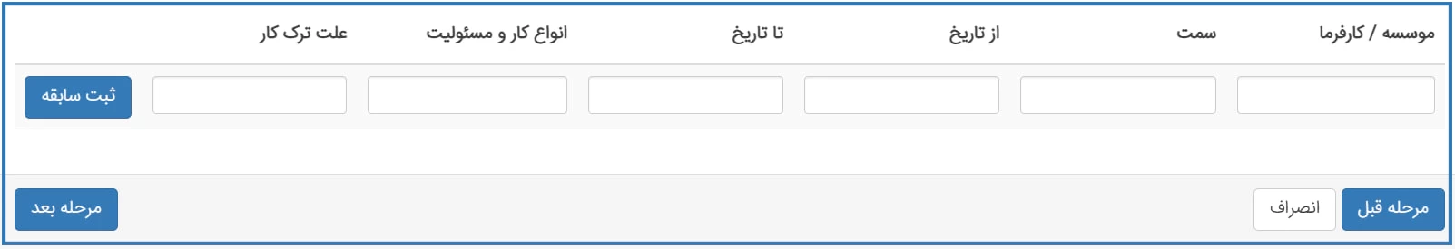 مرحله هشتم: ثبت اطلاعات سوابق کاری