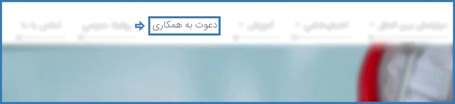 پس از ورود به سایت اصلی این شرکت، از نوار بالای صفحه، روی گزینه "دعوت به همکاری" کلیک نمایید.