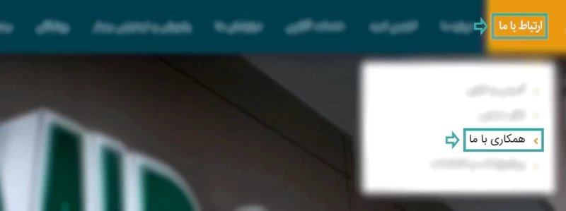 پس از ورود به سایت اصلی این بیمارستان، از نوار بالای صفحه، گزینه "ارتباط با ما" را انتخاب کرده و در منوی بازشده، روی "همکاری با ما" کلیک نمایید.