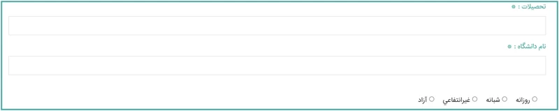این مرحله مربوط به اطلاعات سوابق تحصیلی شما است ابتدا باید آخرین مقطع تحصیلی خود را در قسمت "تحصیلات" وارد کرده و سپس نام دانشگاه محل تحصیل را در کادر مربوطه ثبت نمایید. همچنین لازم است نوع نظام آموزشی خود را از میان گزینههای موجود انتخاب کنید.