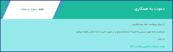 پس از ورود به بخش دعوت به همکاری، اطلاعات خواسته شده را تکمیل کرده سپس بر روی دکمه «تائید و ارسال» کلیک نمایید