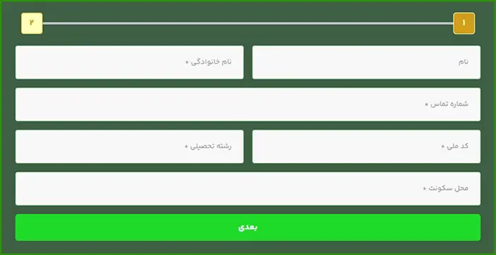 پس از ورود به صفحه مربوطه، اطلاعات و مشخصات خواستهشده را بهصورت کامل تکمیل کرده و بر روی گزینه «بعدی» کلیک نمایید.