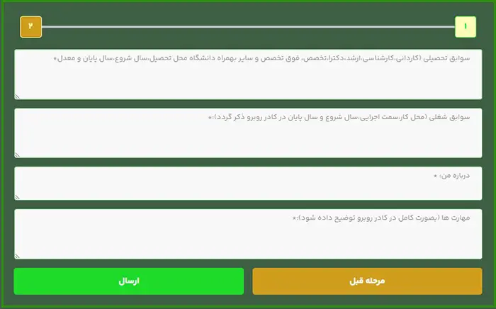 مرحله دوم: تکمیل و ارسال فرم استخدام