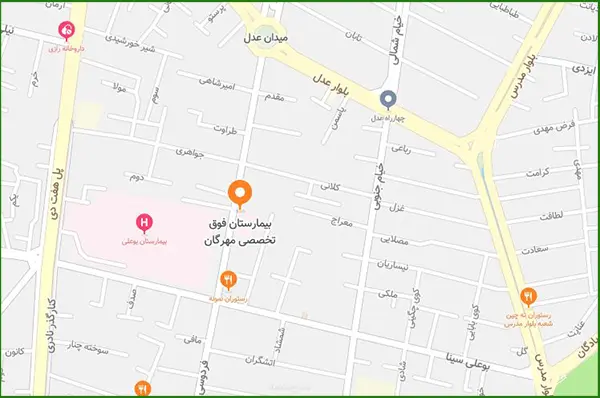 راههای ارتباطی بیمارستان مهرگان قزوین