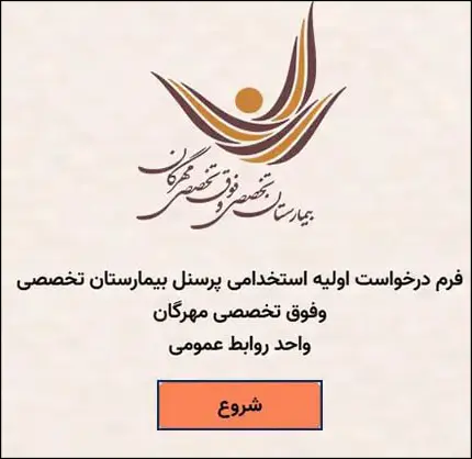 پس از ورود به بخش فرم استخدام، در صفحه باز شده بر روی دکمه «شروع» کلیک نمایید.